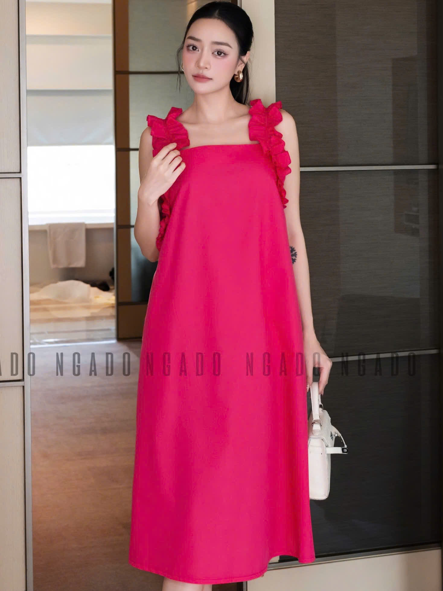 ĐẦM SUÔNG SÁT NÁCH NHÚN TẦNG - VÁY ĐẦM CAO CẤP CARDINA - VẢI CHÉO Ý MỀM MỊN MÁT - TRẺ TRUNG