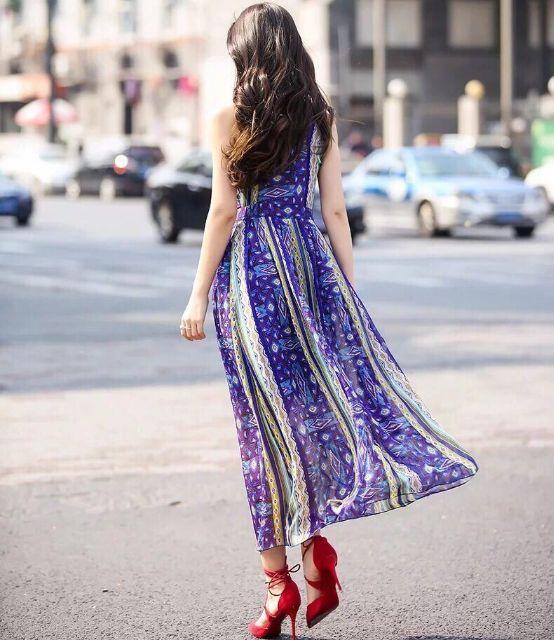 Đầm Maxi Đi Biển Hoa Văn Rực Rỡ Hở Lưng#2babe