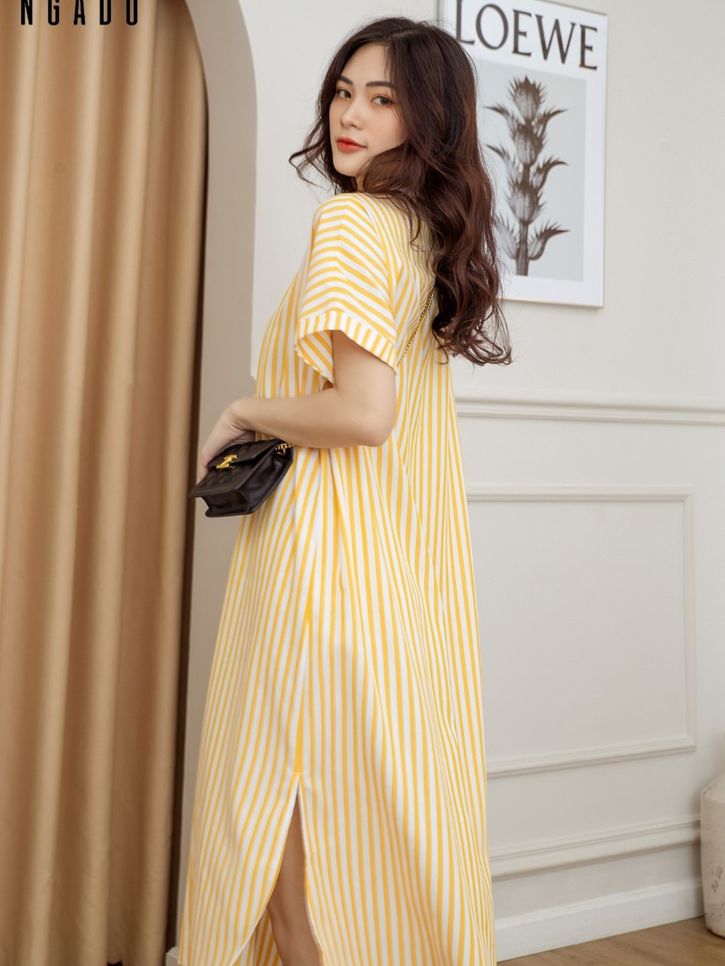 * GIỚI THIỆU VỀ SẢN PHẨM: Chất liệu: lụa sọc Màu sắc: vàng Chi tiết sản phẩm: không lót, có túi Mức độ phù hợp: đi tiệc, công sở, dạo phố… Số đo theo bảng size