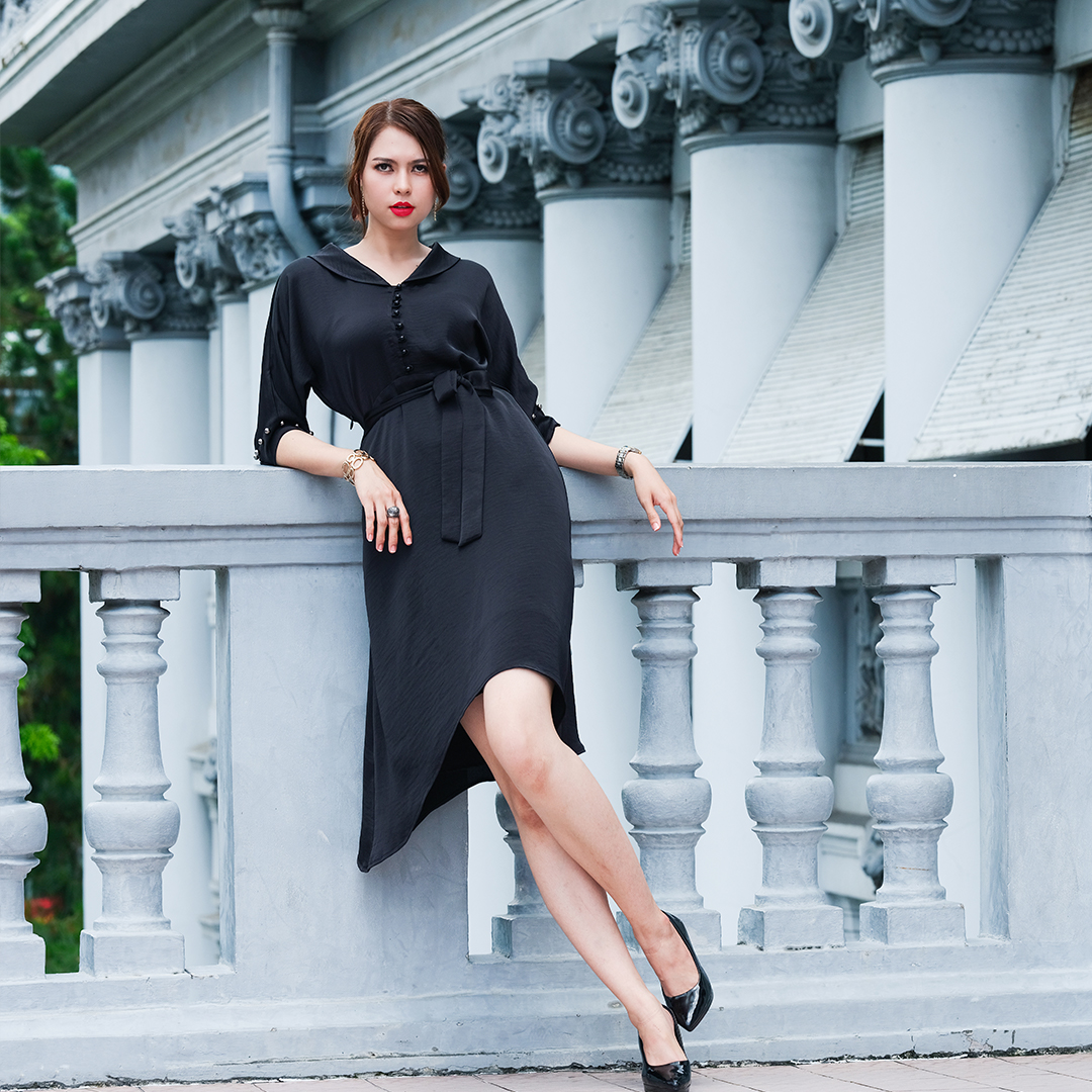 Đầm cho người mập big size Nếu màu sắc càng đơn giản thì càng phù hợp với những bạn có thân hình to béo. Đặc biệt là lợi thế của màu đen sẽ đánh lừa