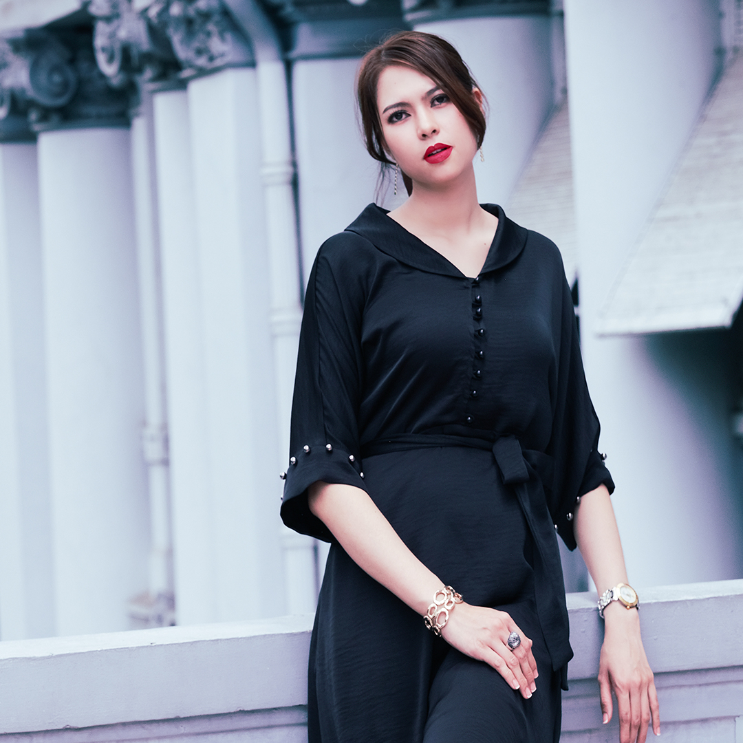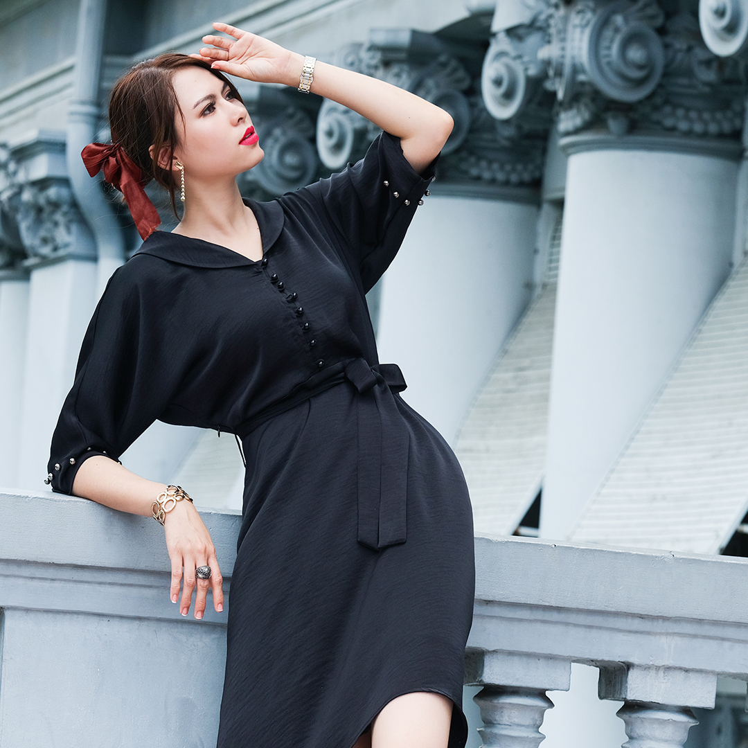 ✨Đầm Tay Liền Đầm Kiểu Sang Trọng Thời trang thiết kế Hity DRE130 (Đen Huyền Bí)