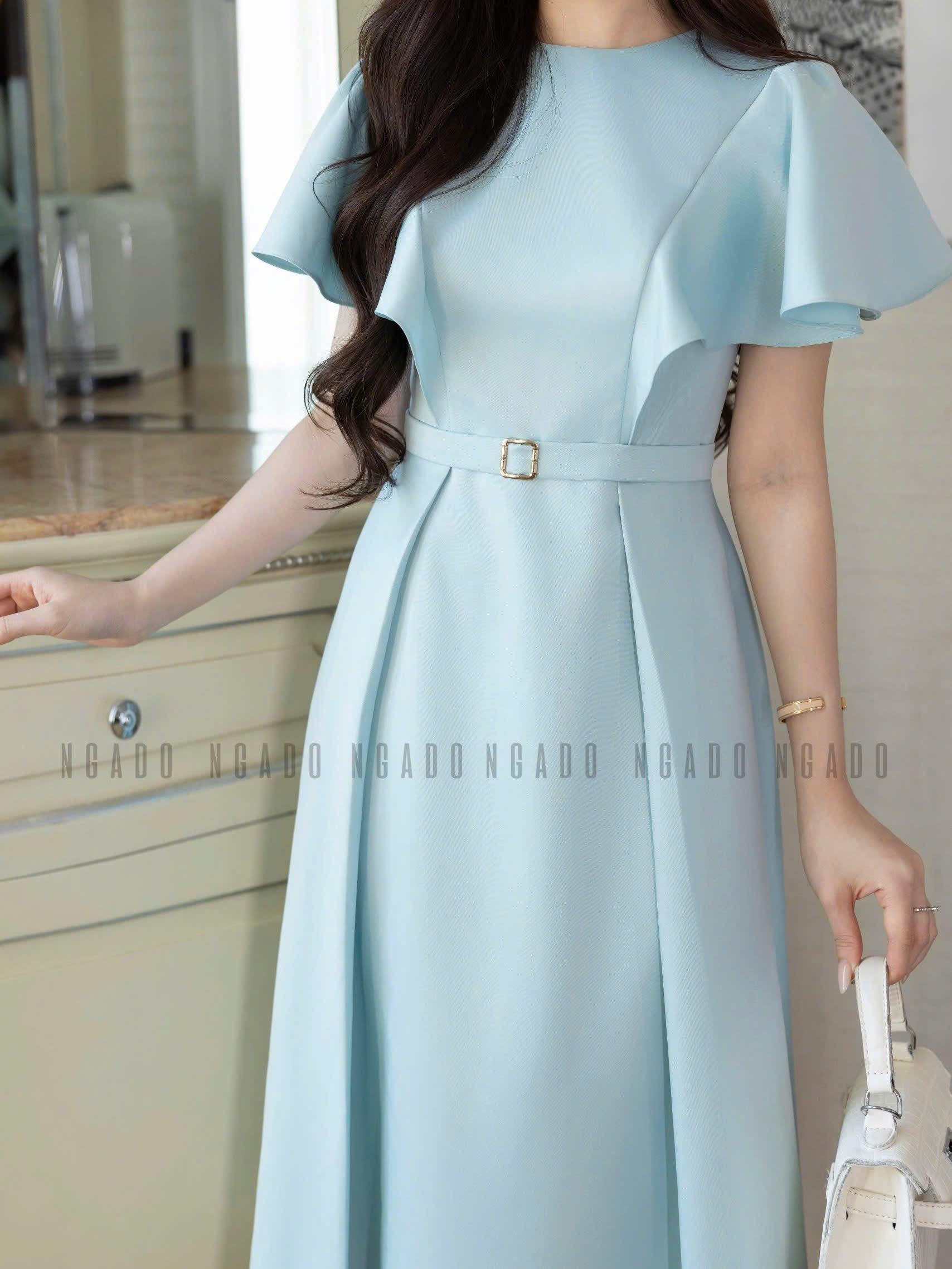 ✨Đầm xanh mint cổ tròn NGADO , đầm dài , đầm dự tiệc , công sở