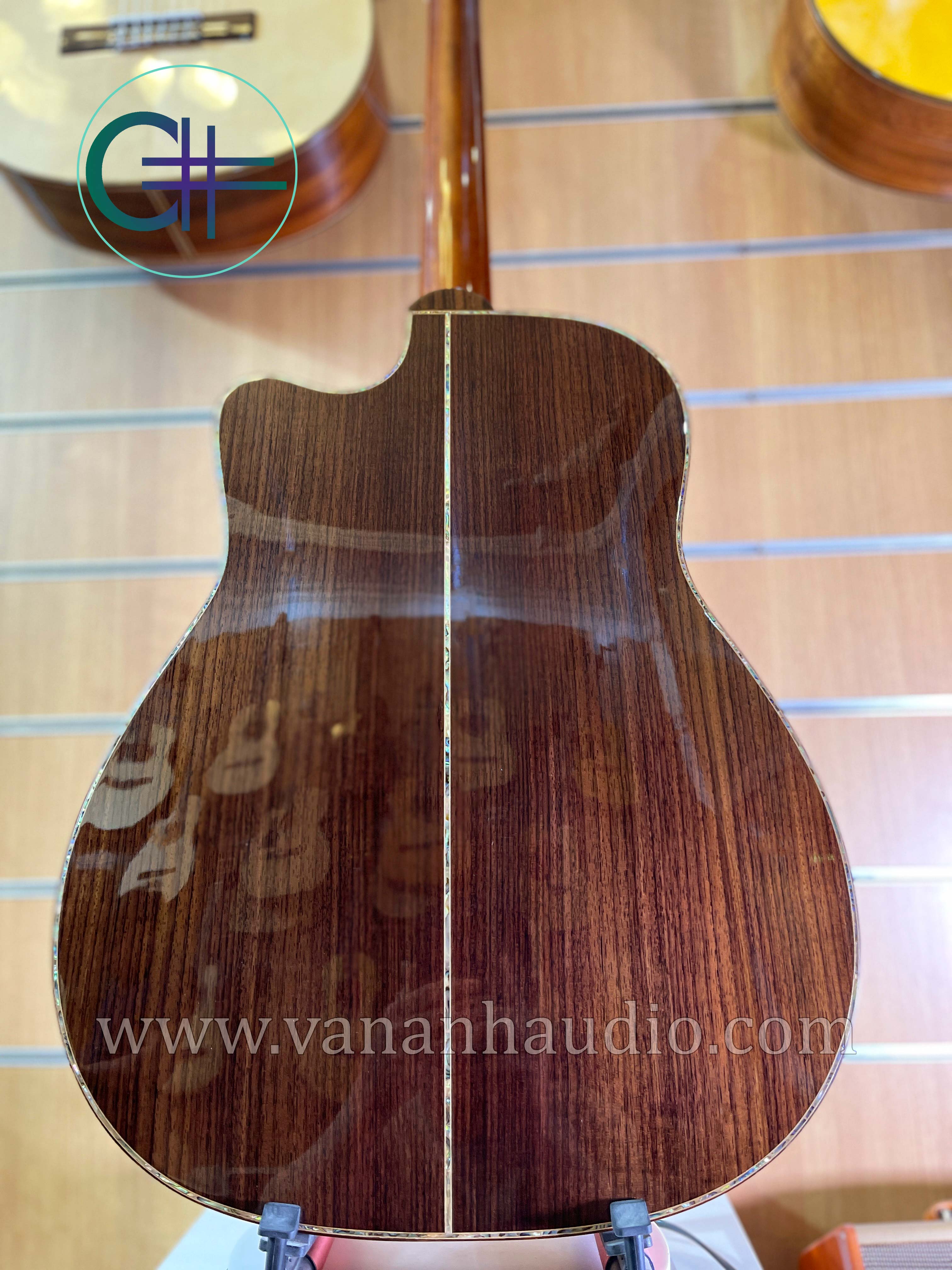 Mua tại TiktokĐàn Guitar Acoustic CL2022 được sản xuất thủ công theo đơn đặt hàng thiết kế riêng cho anh Doãn Thành Trung. -Đàn được làm bằng chất liệu chính là gỗ Cẩm Ấn, được nghệ nhân khảm trai, ốc xà cừ lấp lánh sang trọng và tinh tế. -Văn Anh Audio nhận đặt hàng guitar Custom gỗ cẩm Ấn giá từ 13-17 triệu tuỳ theo yêu cầu