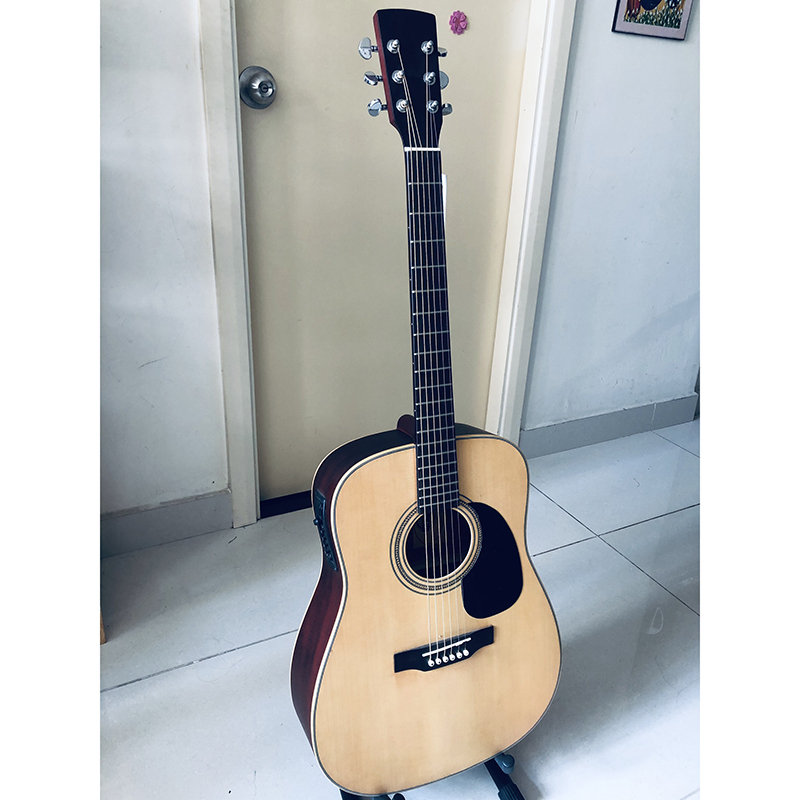 Thông tin chi tiết cây đàn acoustic DD200X có EQ 7545R Đàn Guitar acoustic có EQ Mã: DD200X Mặt: gỗ thông Eo + lưng: gỗ hồng đào Cần: gỗ thao lao, có ty chống cong cần Mặt phím: gõ mật Ngựa: gõ mật Dây: Alice AW436 Khóa: Taiwan EQ: 7545R