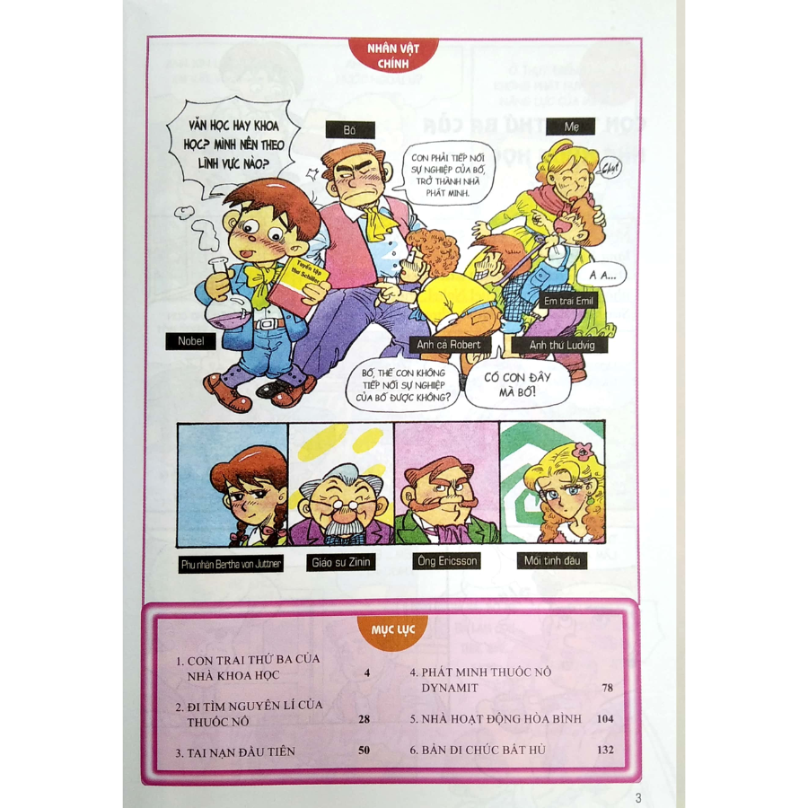 Alfred Nobel sinh ra trong một gia đình trí thức. Ngay từ nhỏ Nobel đã yêu thích các môn khoa học. Yêu thích cả văn học và khoa học nhưng ông đã chọn con đường nghiên cứu khoa học vì cho rằng đó là con đường mang lại hạnh phúc, hòa bình cho nhân loại. Ông đã để lại 350 phát minh như: thuốc nổ dynamit, thiết bị biến chất lỏng thành chất rắn, sợi nhân tạo, máy cắt tự động… Đặc biệt, phát minh ra thuốc nổ dynamit của Nobel đã đưa tiến trình phát triển của nhân loại lên một bước mới. Nhưng dynamit cũng được dùng làm vũ khí chiến tranh, điều đã khiến Nobel vô cùng đau khổ, nên ông nguyện cống hiến toàn bộ tài sản cho hòa bình của thế giới.