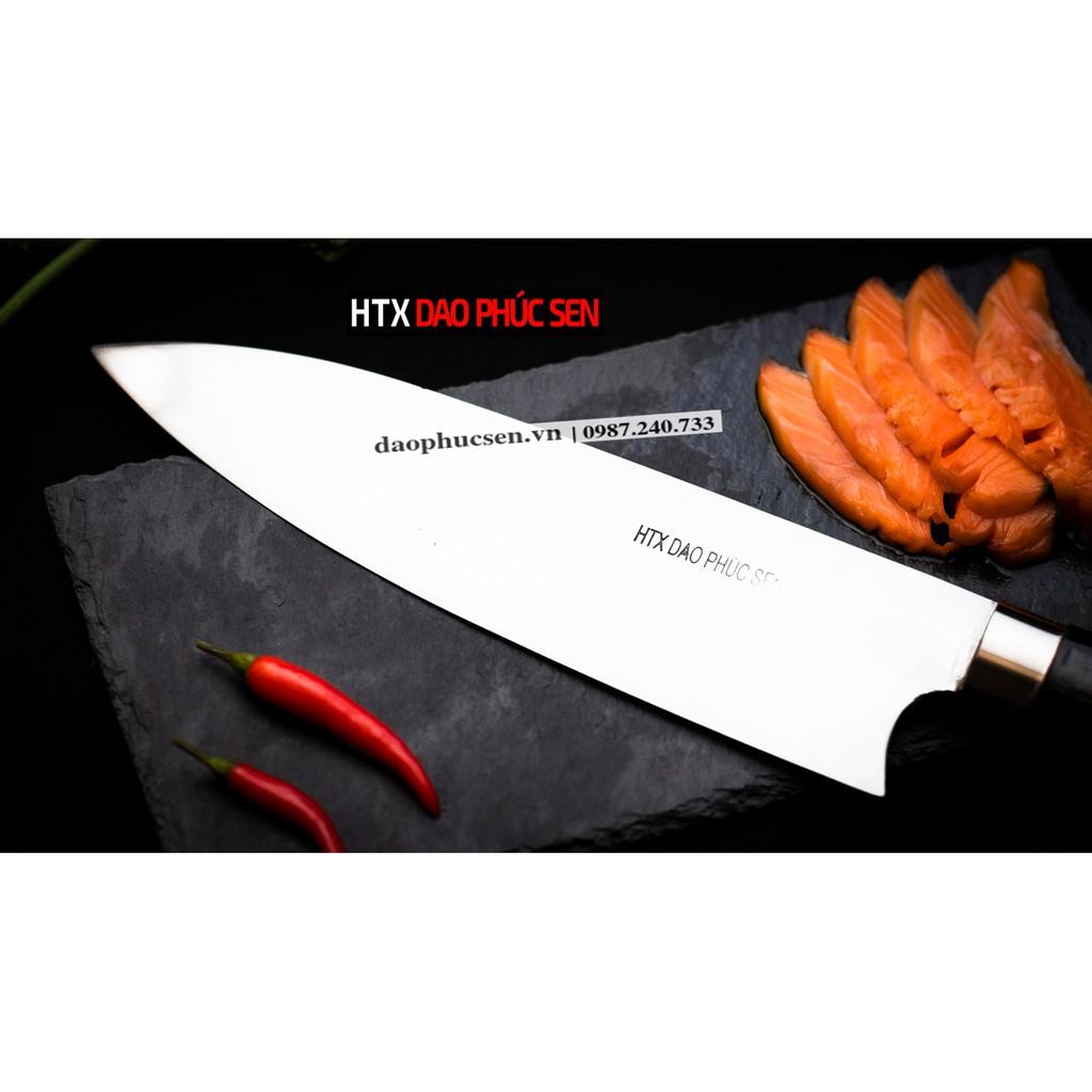 Dao Phúc Sen - Dao Thái Nhỏ Mini (Vỏ Gỗ Cẩm Chỉ) - Chức năng: chuyên chặt thái cá, chặt gà, lọ - Kích thước: Lưỡi: 26cm, cán: 12,5cm, rộng: 6,5cm, dầy: 4ly, trọng lượng: