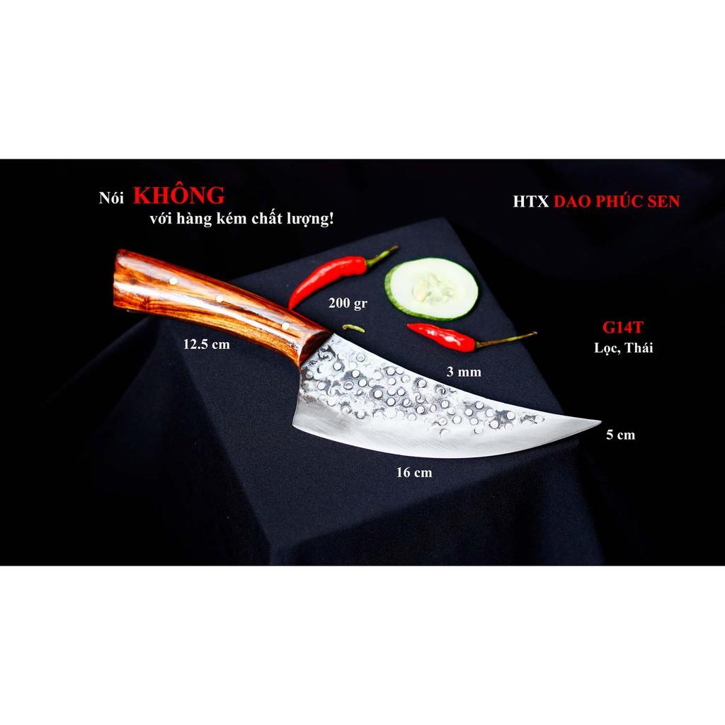 Tên sản phẩm: Dao Phúc Sen dao Thái Kiểu 04 GT04 - Chức năng: chuyên thái thịt, rau củ - Chất liệu: 100% thép nhíp ô tô được lựa chọn và kiểm duyệt kỹ càng.