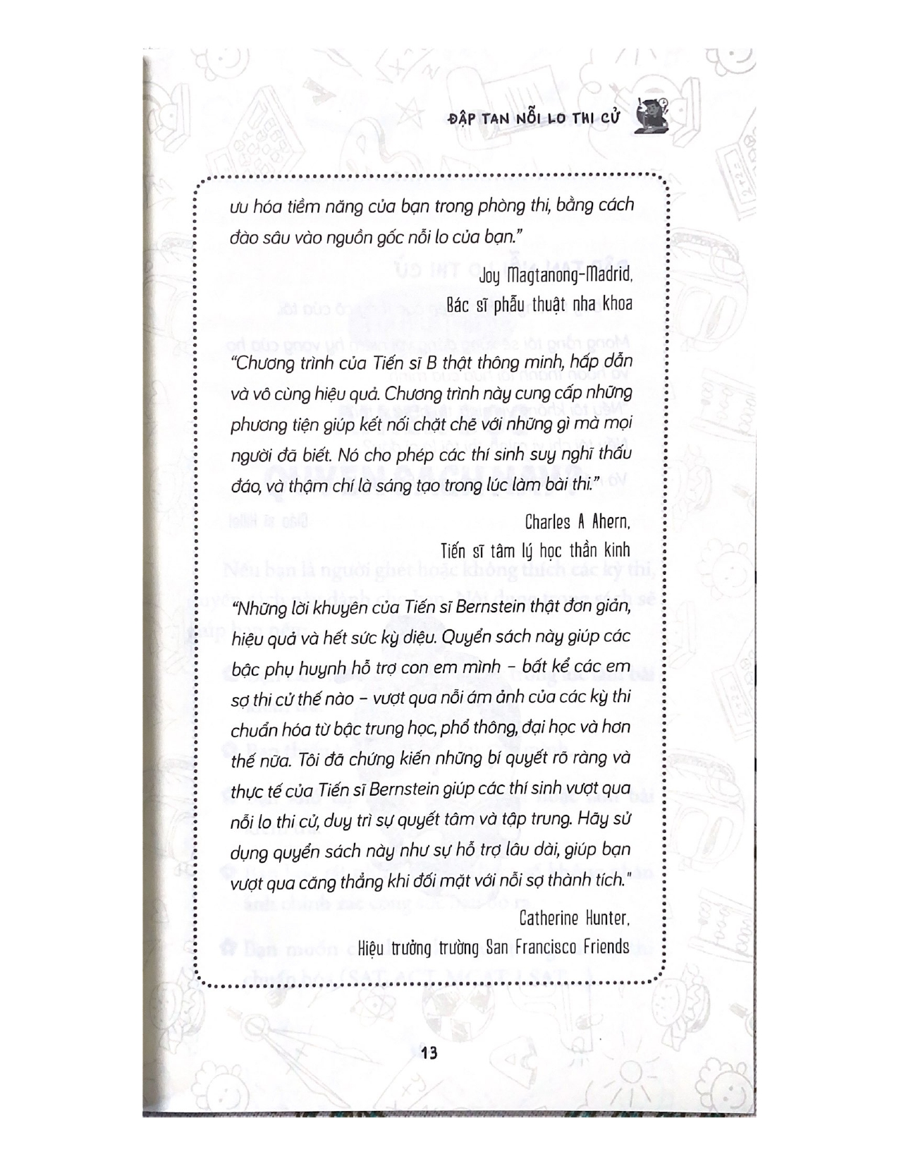ĐẬP TAN NỖI LO THI CỬ được xây dựng dựa trên những điều Ben Bernstein đã học được từ sự phát triển bản thân, cũng như qua quá trình làm việc cùng hàng ngàn học sinh, giáo viên