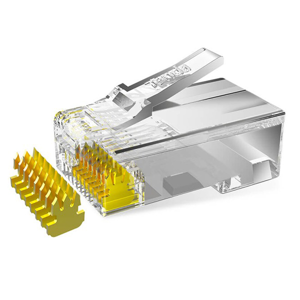 Đầu RJ45 CAT5e Tenda TEH5E010 được làm hoàn toàn bằng nhựa nguyên chất, không dùng nhựa tái chế nên đảm bảo độ bền, dẻo dai, không vần đục. Đầu cáp mạng được thiết kế với kích thước 22.4×11.6×8 mm tương thích với các ổ cắm mạng trên các loại máy tính, laptop, thiết bị văn phòng, server,…… Tám đầu tiếp xúc của đầu mạng được làm hợp kim siêu chắc mang đến tốc độ truyền tải nhanh và tốt nếu được bấm dây cẩn thận thích hợp cho các hệ thống cần tốc độ cao và ổn định: Camera, BootRom, Server,… Sản phẩm còn được đi kèm với hộp đựng gồm 100 đầu mạng giúp người dùng có thể sử dụng tuỳ theo số lượng mong muốn.