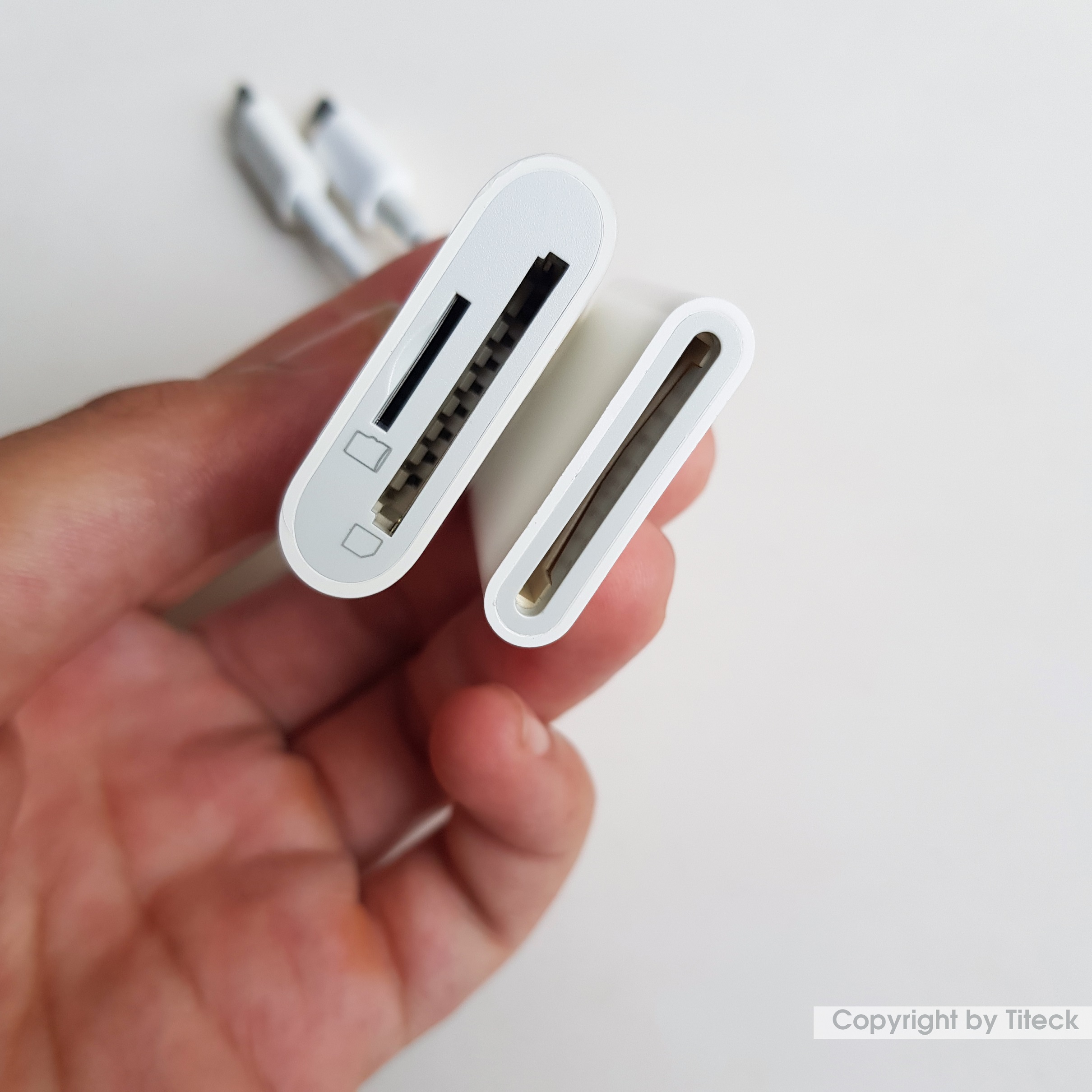 Thông số sản phẩm : Chất liệu : Nhựa ABS Kích thước : 65x65x65 mm Cổng kết nối : Type C, USB, L 8 pin Đầu đọc thẻ : SD ,