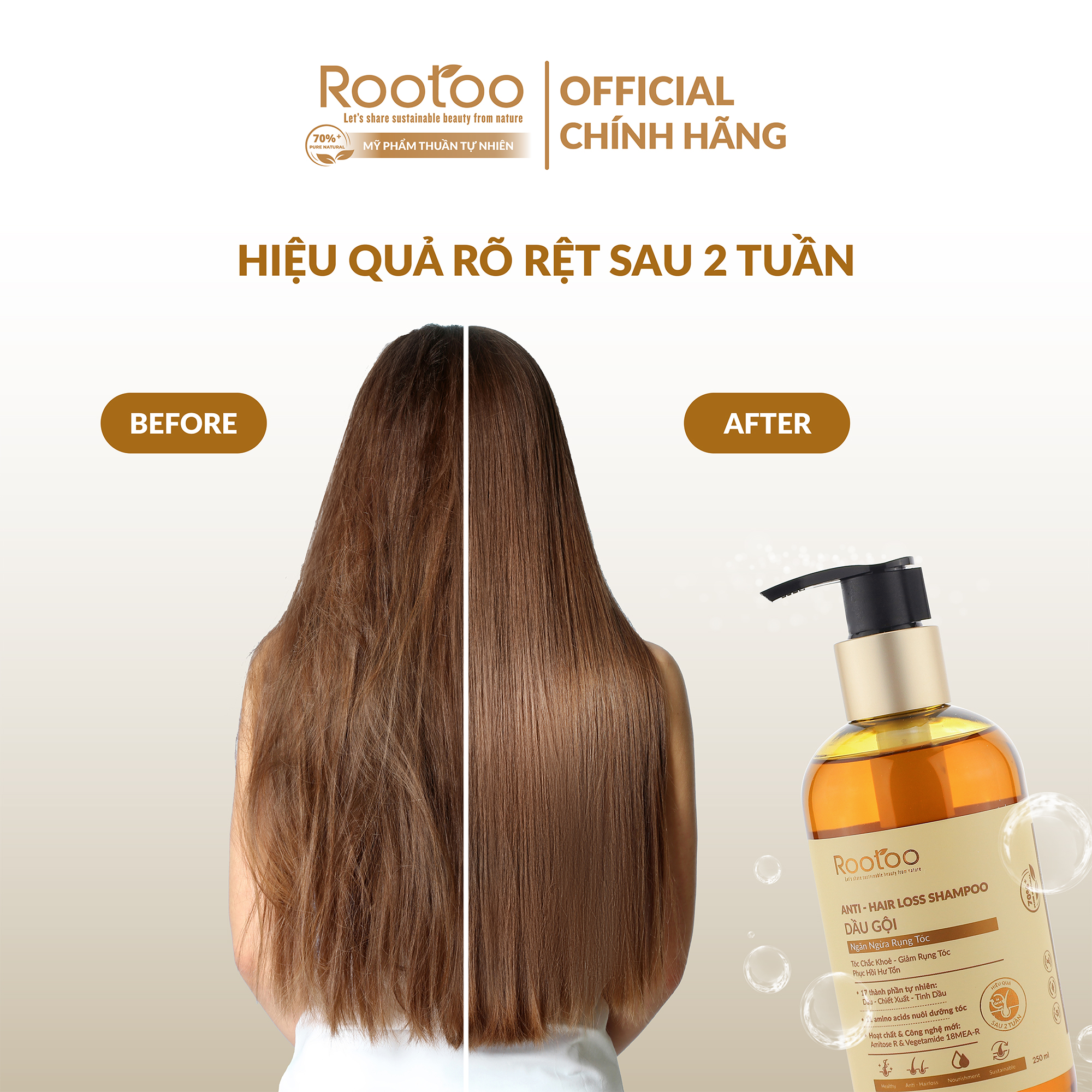- Dầu Gội Ngăn Ngừa Rụng Tóc Rootoo giúp ngăn ngừa rụng tóc, phục hồi hư tổn và giúp tóc chắc khỏe, giảm gàu.