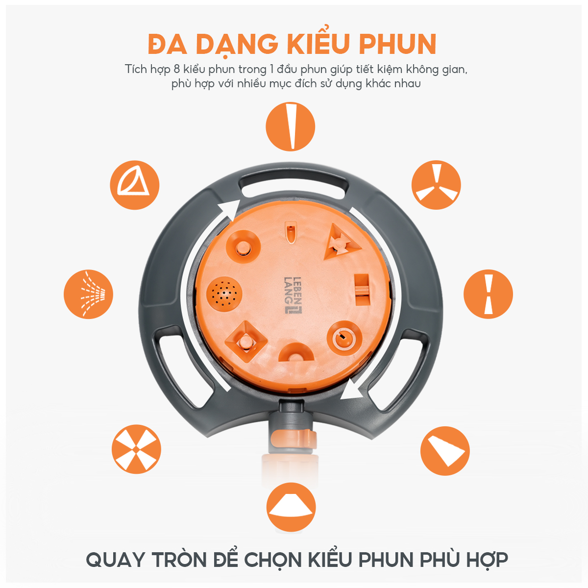 Đầu vòi phun nước tưới cây Lebenlang LBL3369, gồm 8 kiểu phun nước đa dạng khác nhau, thiết kế tiện dụng - hàng chính hãng