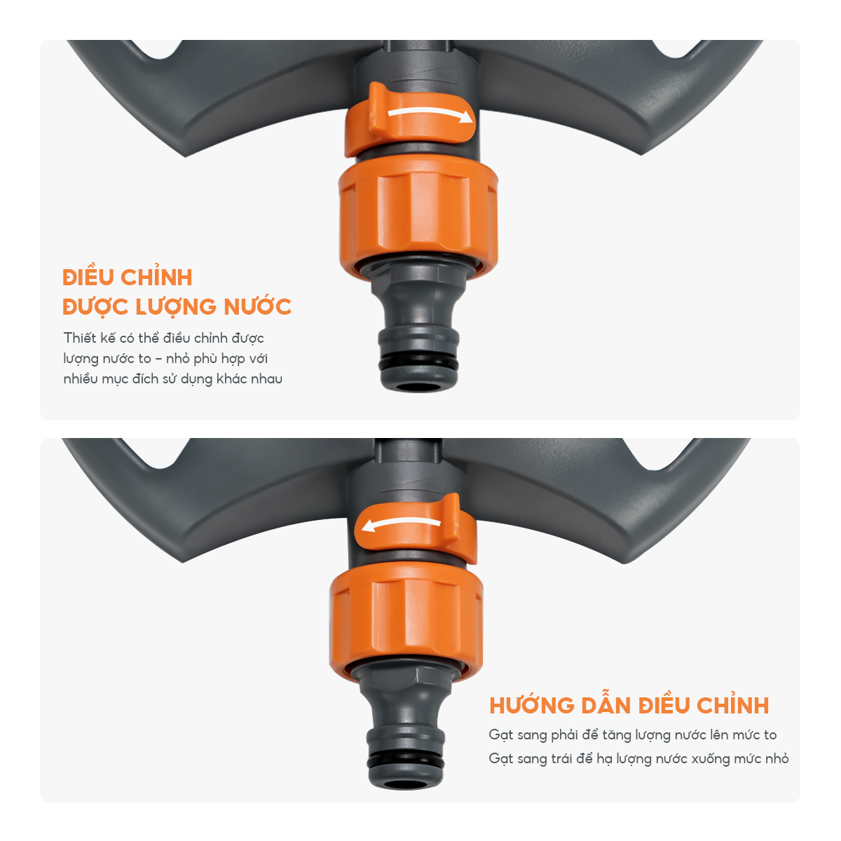 - Điều Chỉnh Lượng Nước: Sử dụng gạt để điều chỉnh lượng nước phun từ to đến nhỏ.