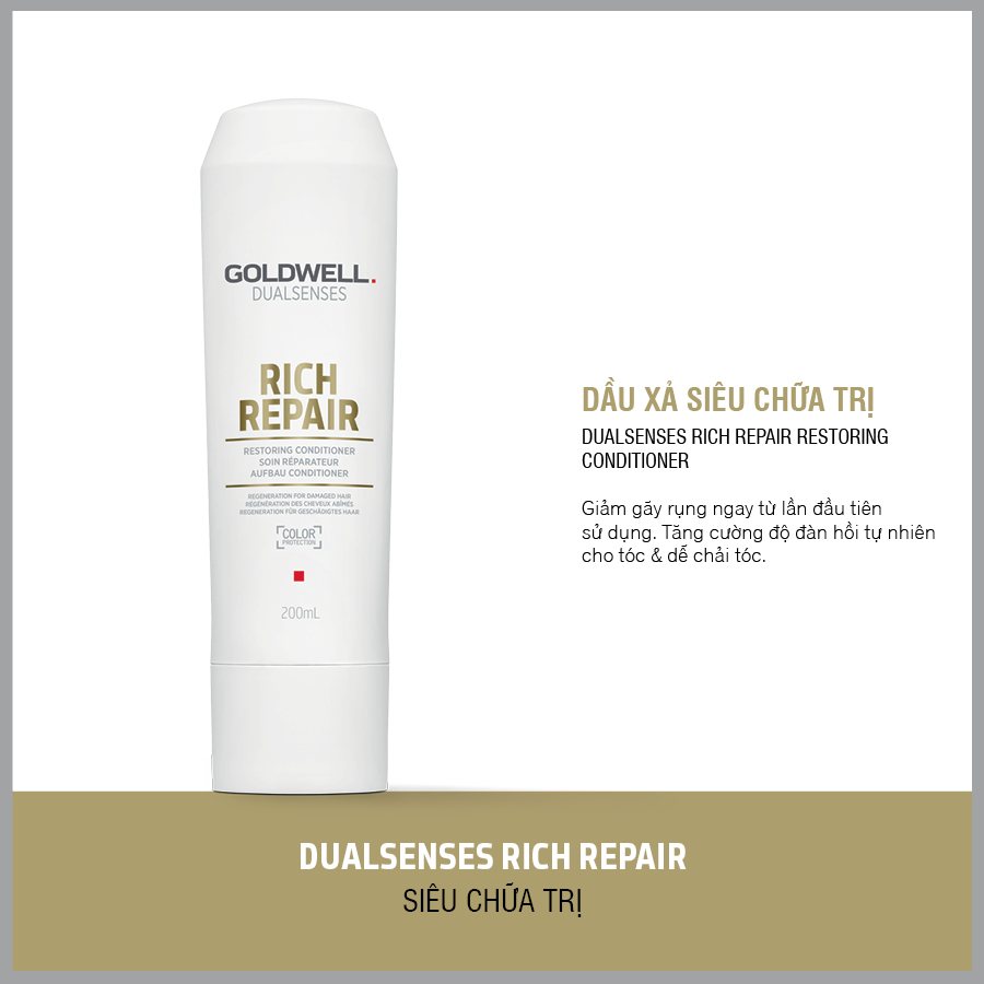 Dầu Xả Goldwell Rich Repair Phục Hồi Tóc Hư Tổn, Chẻ Ngọn Từ Sâu Bên Trong - Phù hợp với tình trạng tóc: + Tóc hư tổn trung bình tới hư tổn nặng + Tóc