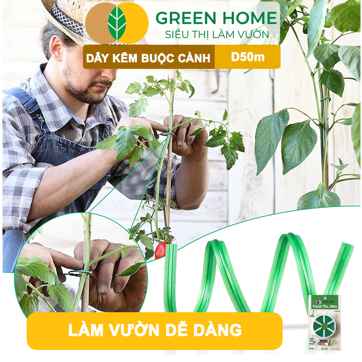 ✨Dây Buộc Cành GreenHome, Dài 50m, Kẽm Bọc Nhựa, Tích Hợp Đầu Cắt Tiện Lợi, Cố Định Thân Cây, Làm Giàn Leo