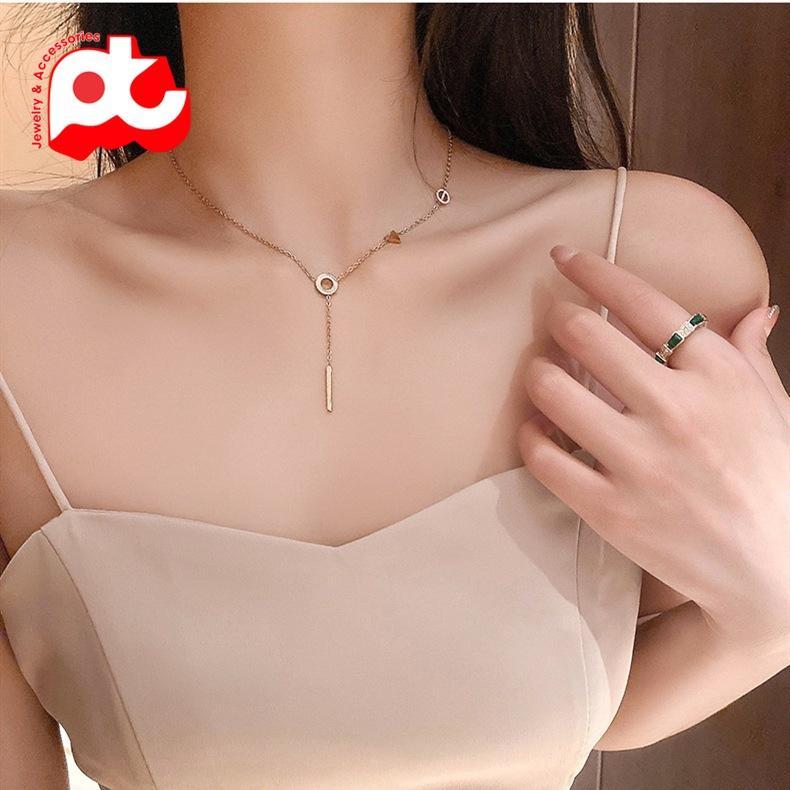 Dây chuyền nữ titan thời trang cao cấp mặt chữ Love cách điệu thép không gỉ trangsucpt có 3 màu sắc DCNUT88
