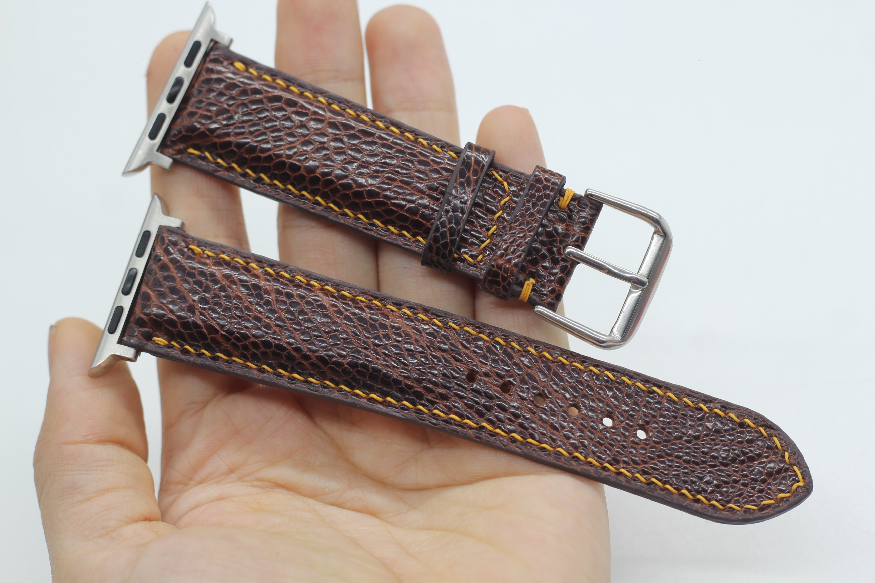 Dây da Apple Watch ĐÀ ĐIỂU handmade cao cấp nhiều màu chỉ vàng size 20mm, 22mm
