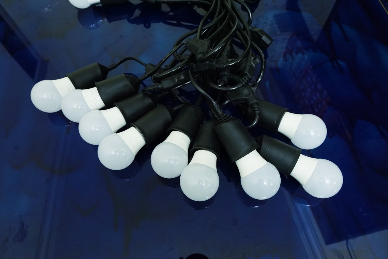Dây đèn ngoài trời đui chuông chống nước loại chuẩn 5m 10 bóng và 10m 20 bóng (bóng LED Bulb 3w và loại bóng Edison G45 theo ý muốn của khách hàng)Có cổng chờ nối tiếp các dâyĐui đèn đúc cao su kín ...
