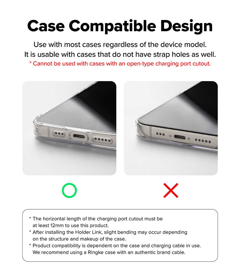 - Sau khi lắp holder link, tuỳ thuộc vào cấu trúc và chất liệu của ốp lưng mà có thể dẫn đến ốp giãn nhẹ.