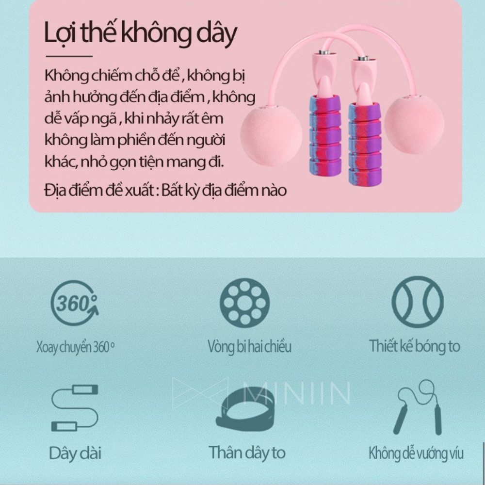 Dây Nhảy Không Dây Có Bóng Lớn Giảm Cân Tập Thể Dục Tiện Lợi Trong Không Gian Hẹp Với Tay Cầm Chống Trượt - HÀNG LOẠI 1 - CHÍNH HÃNG MINIIN THÔNG TIN CHI TIẾT