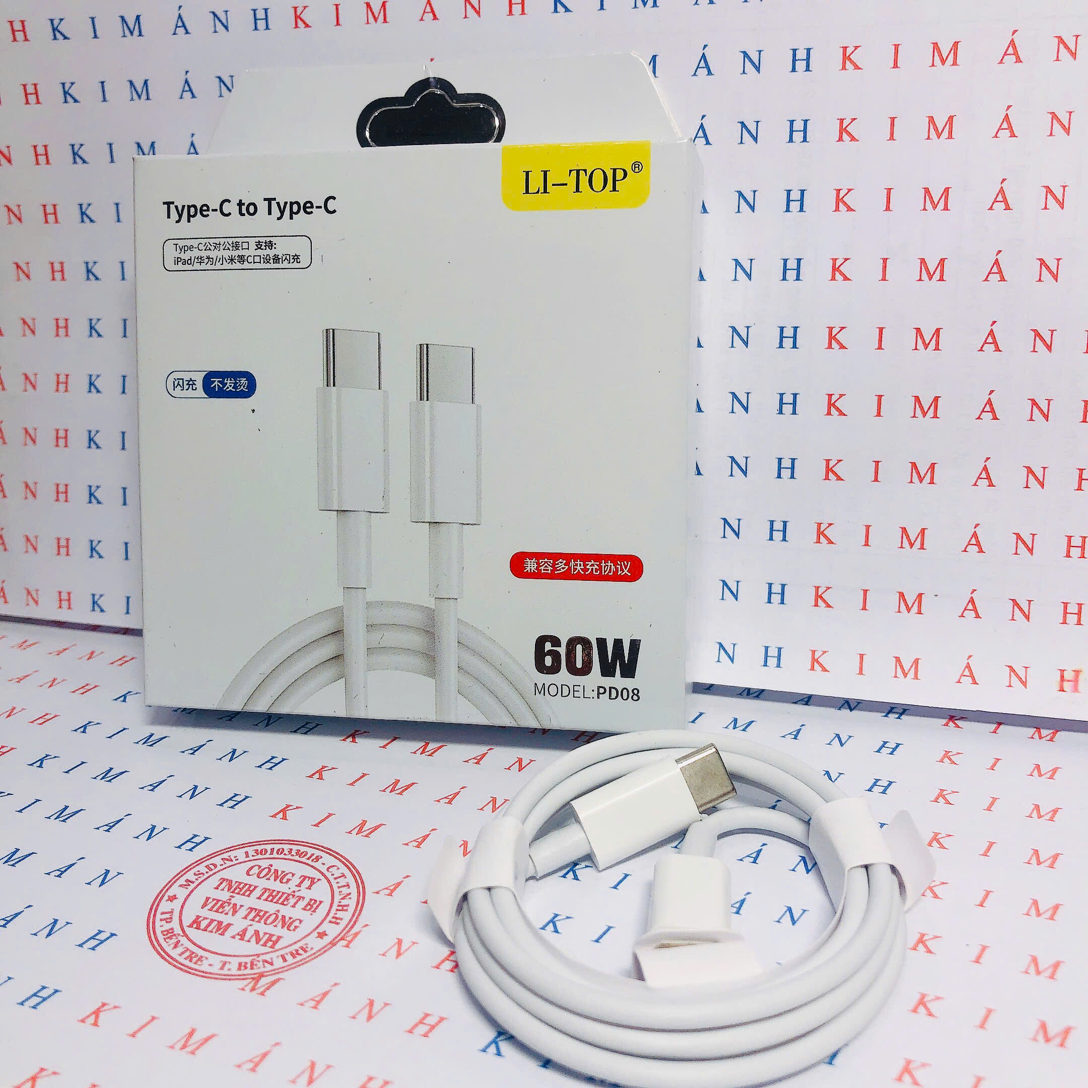 Dây sạc LI-TOP PD08 Công suất 60W chân Type C ra Type C, được dùng thử 30 ngày, Kim Ánh bảo hành chính hãng 12 tháng