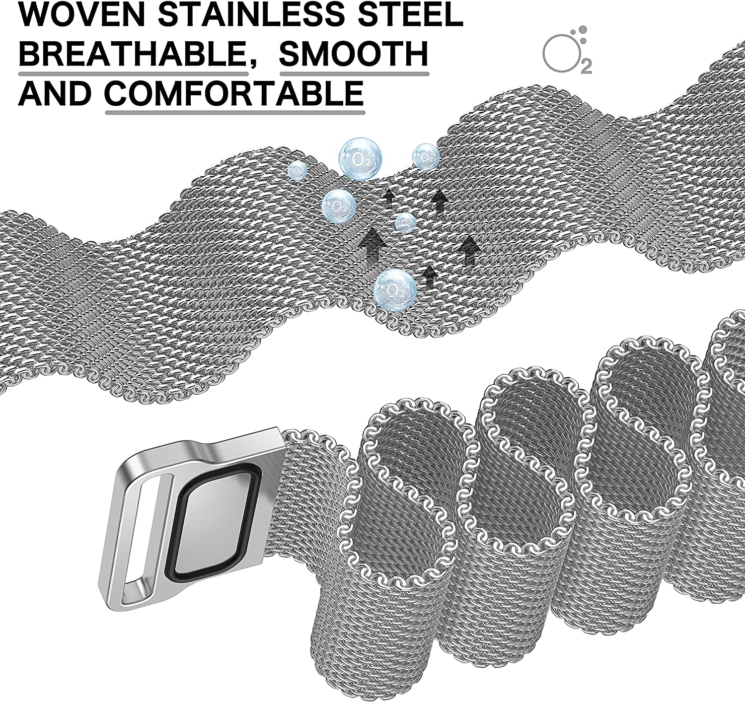 Đặc tính sản phẩm: -- Được dệt trên các máy chuyên dụng, dây đeo Milanese bằng thép không gỉ có khóa từ tính có thể điều chỉnh này sẽ giúp đồng hồ của bạn đeo