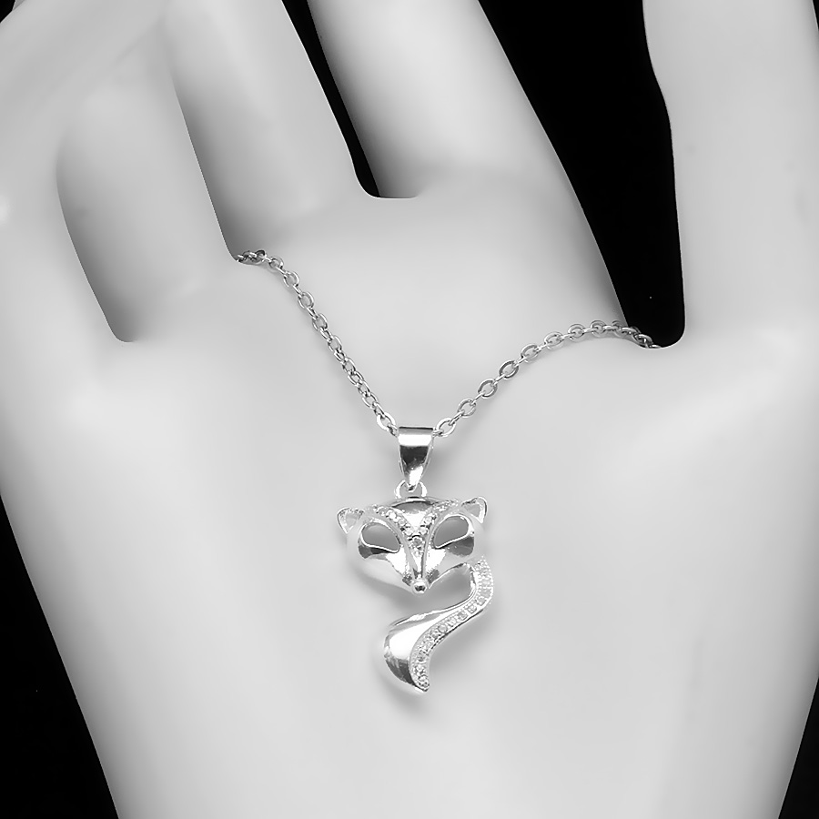 Dây chuyền bạc 925 cao cấp Hồ Ly đá trắng cực sáng, thiết kế sắc nét đến từng chi tiết. Himi.vn