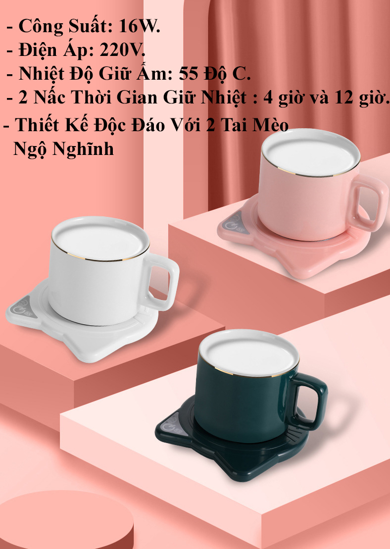Đế Hâm Nóng Giữ Ấm Đồ Uống Hình Tai Mèo KUNBE Hâm Nóng Cà Phê, Trà, Sữa cho Bé, Làm Ấm Đồ Uống Nhanh Chóng Tiện Lợi Sản phẩm Đế Hâm Nóng Giữ Uống