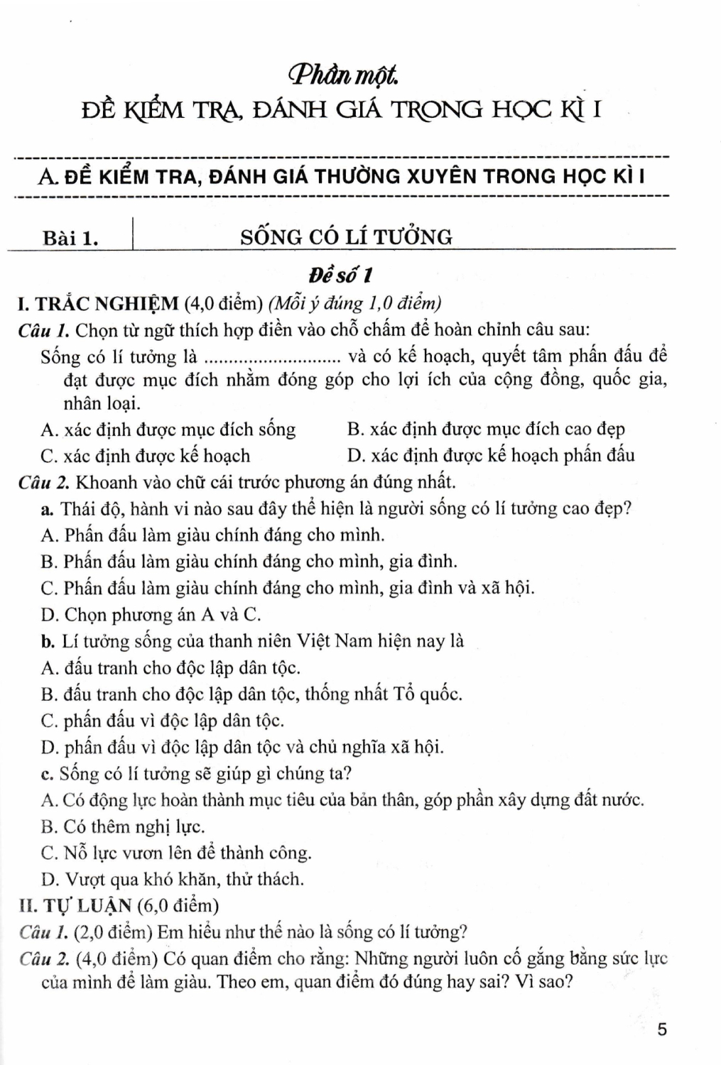 – Phần một. Đề kiểm tra, đánh giá trong học kì I