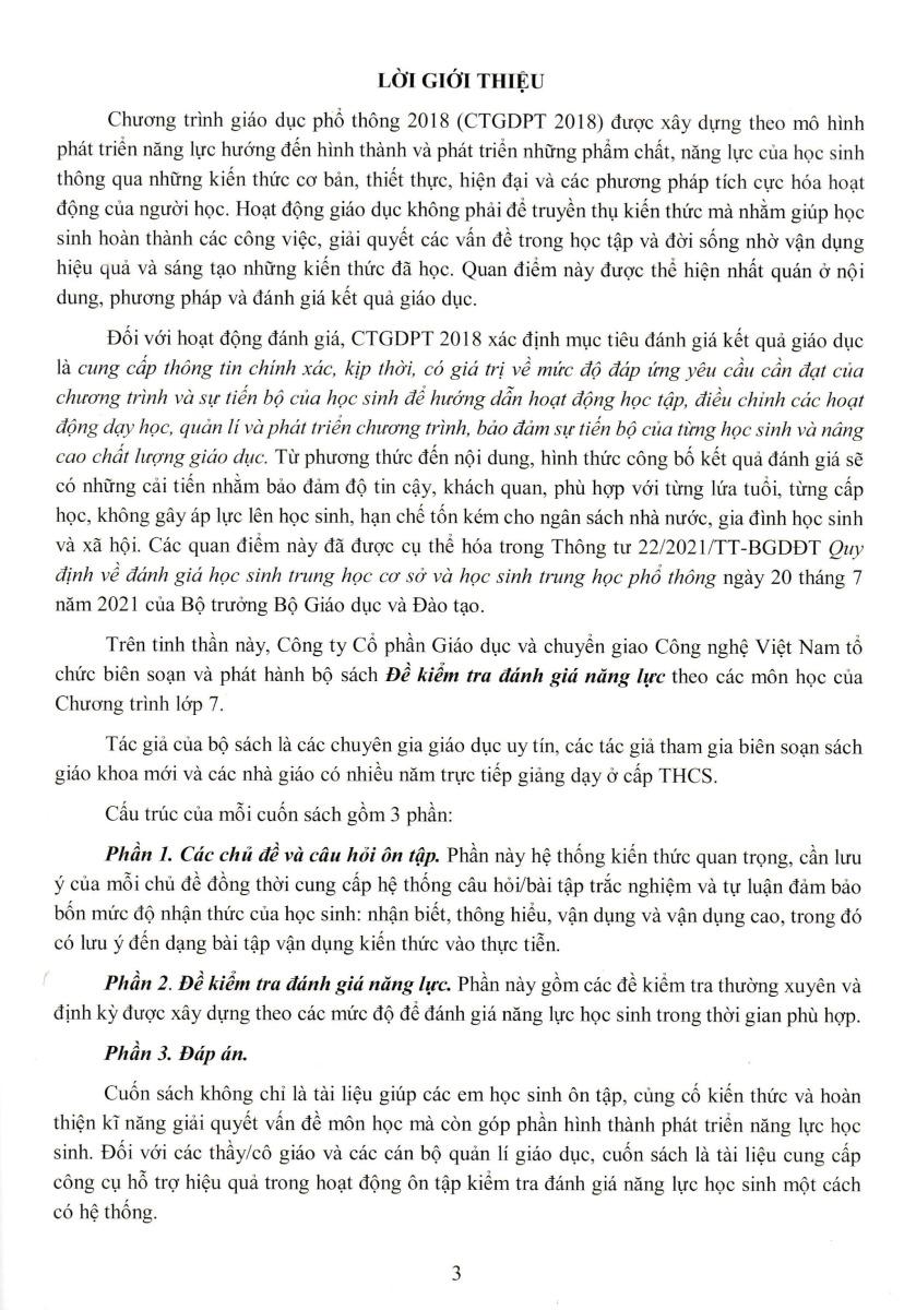 Phần 2. Đề kiểm tra đánh giá năng lực. Phần này gồm các đề kiểm tra thường xuyên và định kỳ được xây dựng theo các mức độ để đánh giá năng lực học sinh trong thời gian phù hợp.