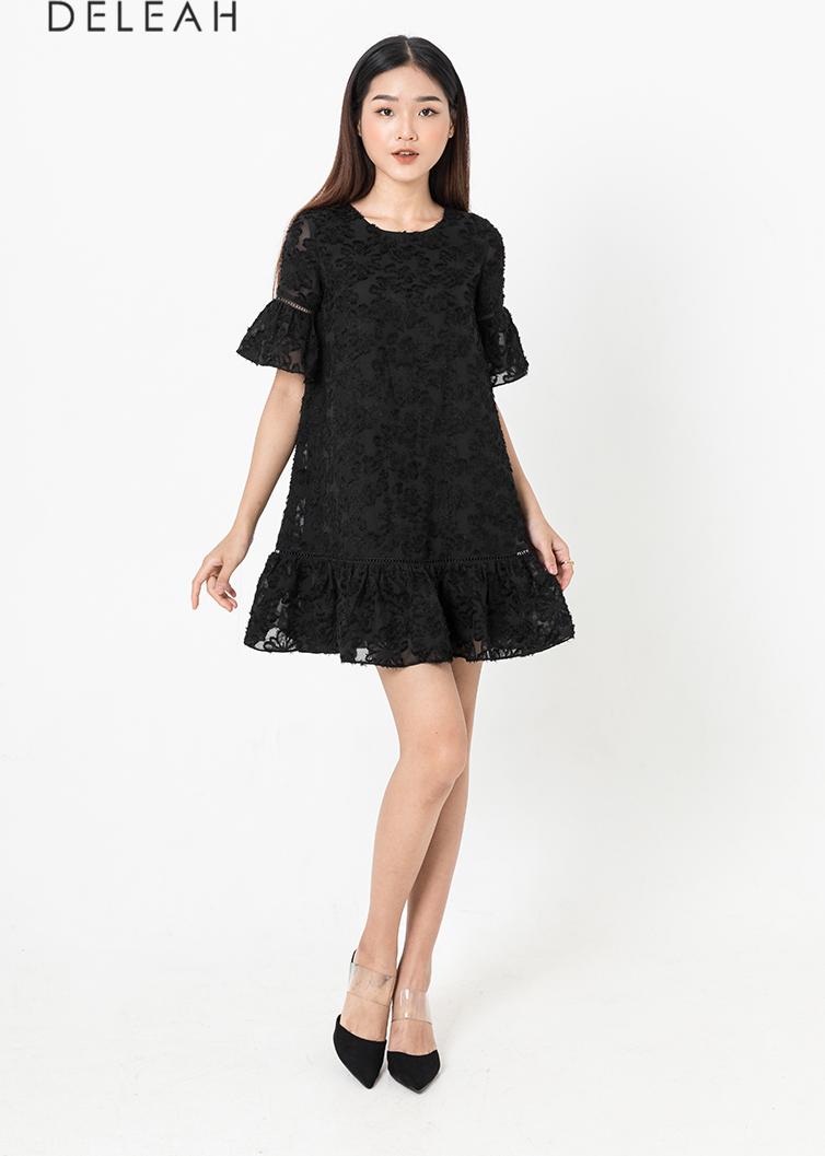 ✨De Leah - Đầm Suông Nấm Tay Lỡ - Đen