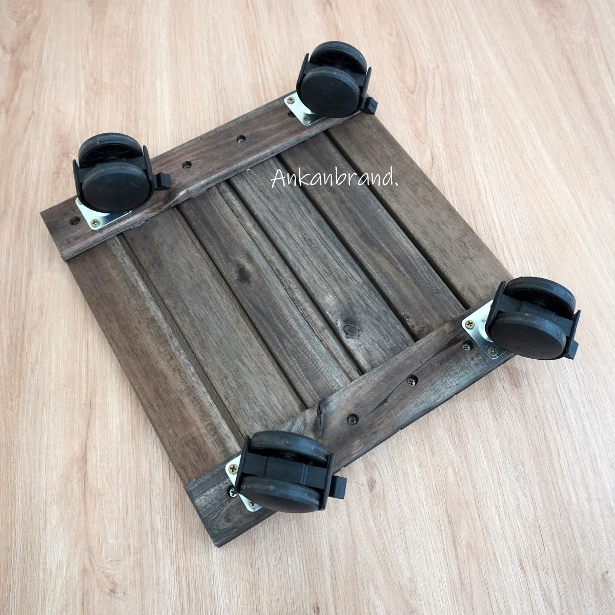 ✨Đế Lót Chậu Cây Có Bánh Xe Thương Hiệu ANKAN, Đế Để Chậu Cây, Mặt Vuông Bằng Gỗ Tràm, Màu Đen Đường Kính 30 Cm, Tải Trọng 80kg - Hàng Xuất Khẩu