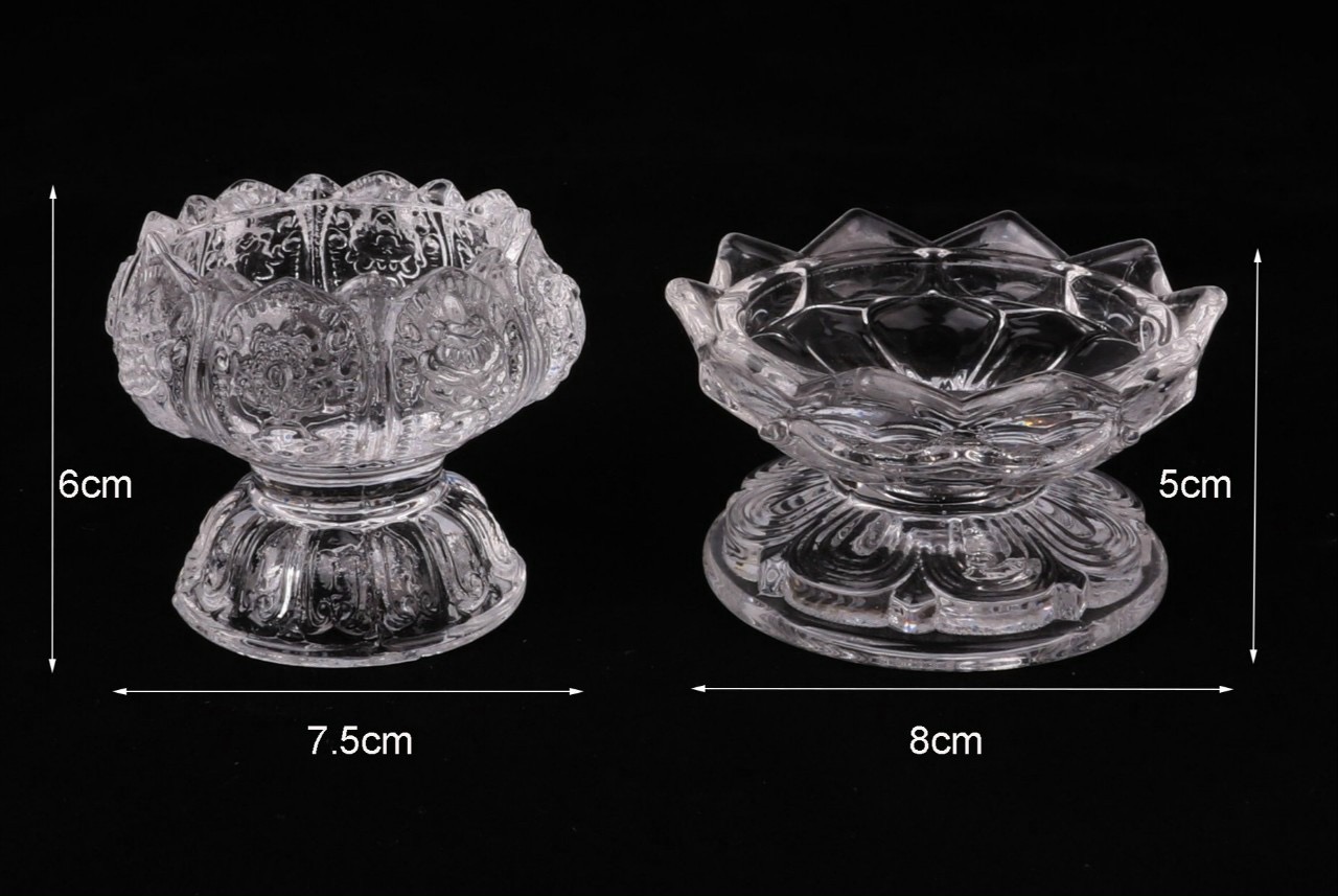 Cặp đèn thờ tay Phật cầm hoa sen với chất liệu giả lưu ly đúc trong và sáng tinh tế, kết hợp với chất liệu đồng và đá lưu ly nguyên chất làm đèn sáng