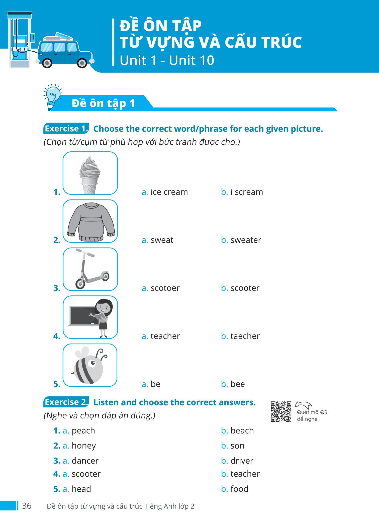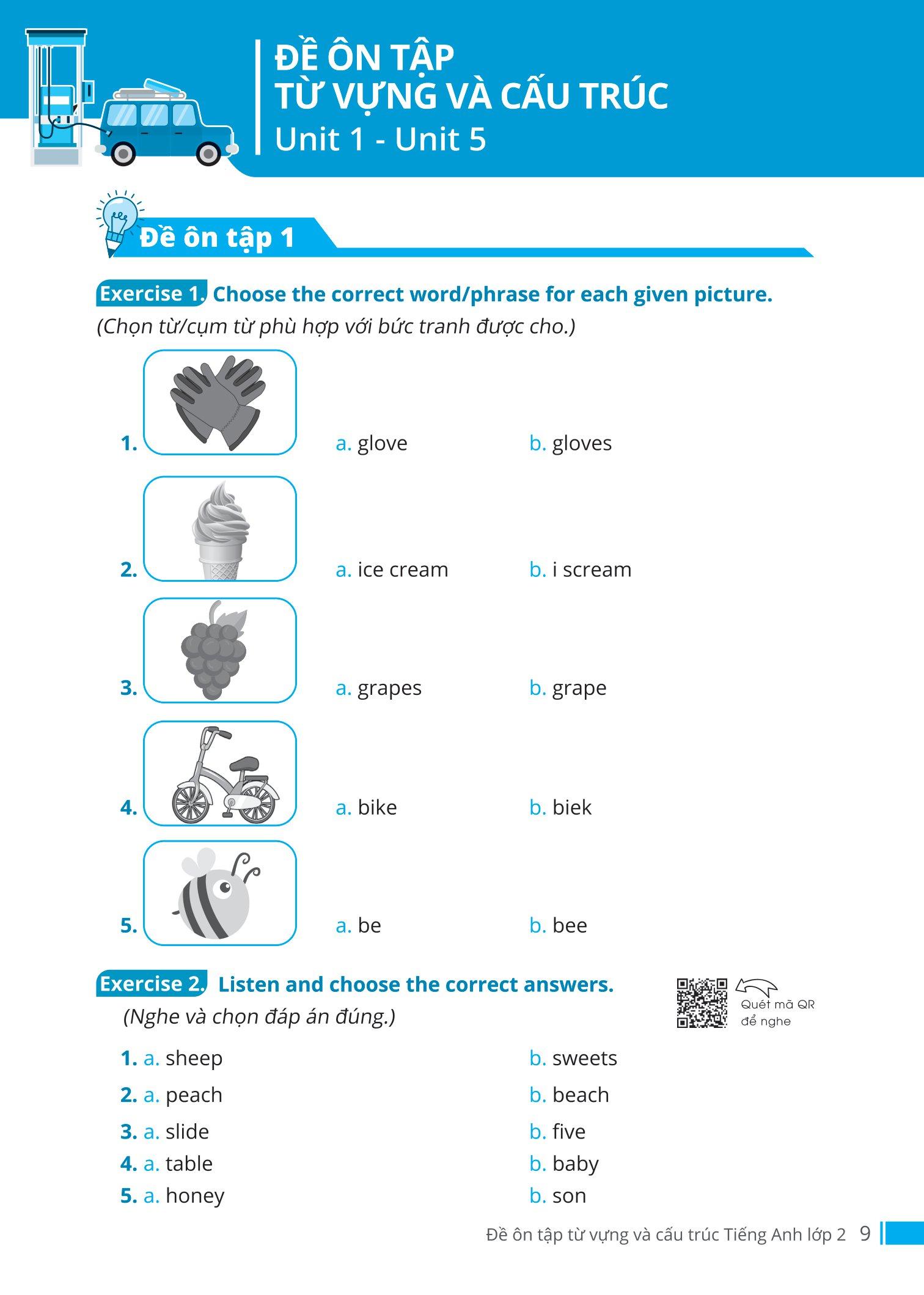 - Cung cấp các đề ôn tập đa dạng, bám sát kiến thức theo chương trình mới Các đề ôn tập giúp các em hệ thống được kiến thức từ vựng và cấu trúc đã học, dễ dàng vận dụng vào quá trình thực hành, hỗ trợ hiệu quả quá trình ôn tập chuẩn bị cho các kỳ thi ở trường.