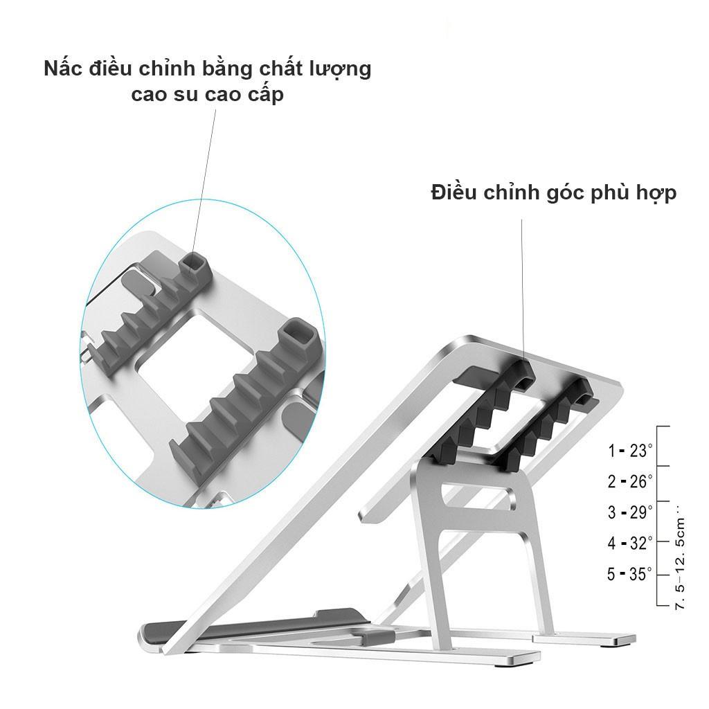 Đế Tản Nhiệt Cao Cấp Dành Cho Macbook, Laptop - Tiện Lợi Cho Việc Mang Theo - Tùy Chỉnh Độ Cao Và Gấp Gọn - Chất Liệu Hợp Kim Nhôm - Có 07 Vị Trí