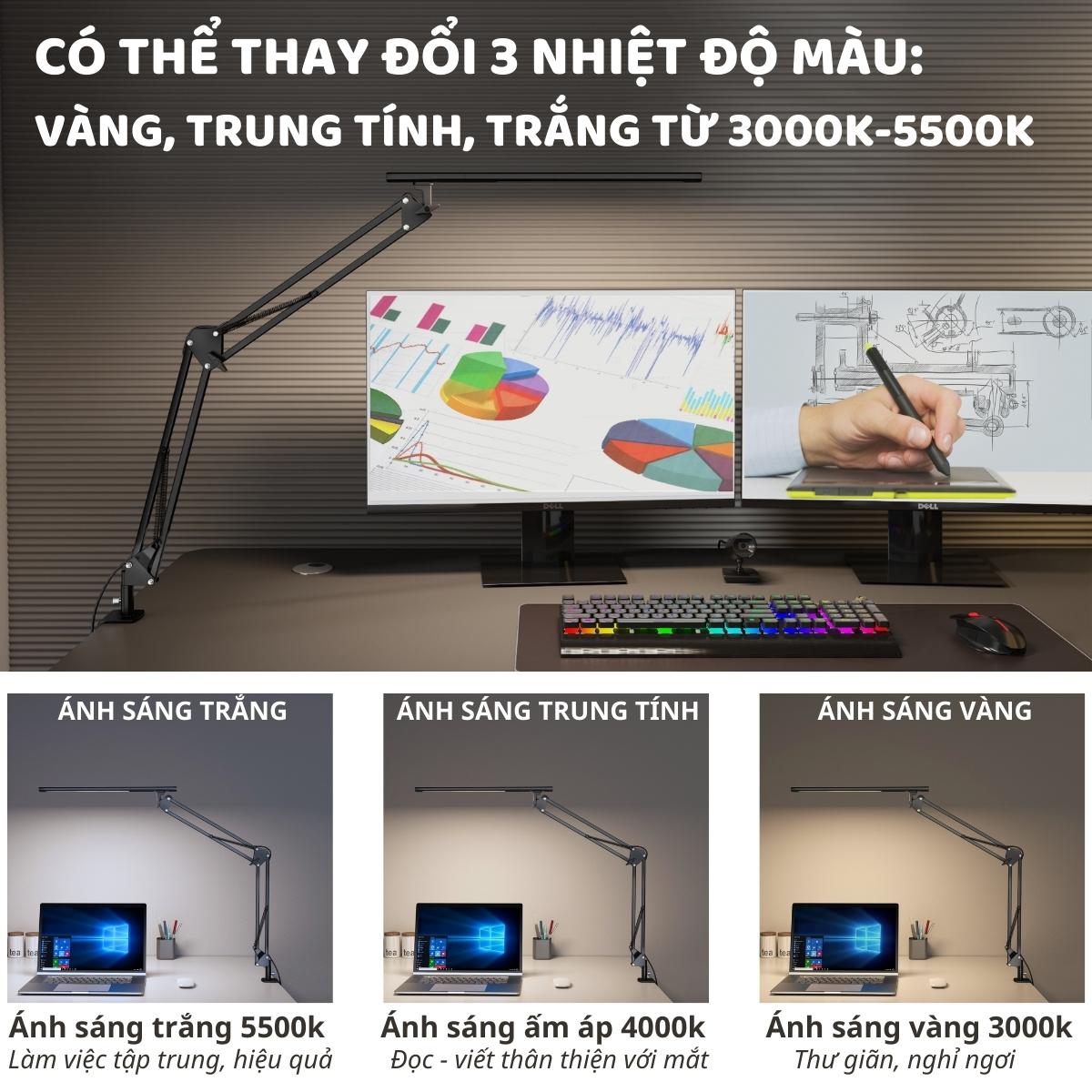 - 3 chế độ màu: ánh sáng vàng, trung tính, trắng