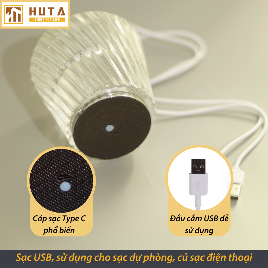 Đèn Bàn Led Quầy Bar, Quán Bar, Nhà Hàng| Cảm Ứng Tăng Giảm Độ Sáng, Pin Sạc Tích Điện| HUTA RESTA