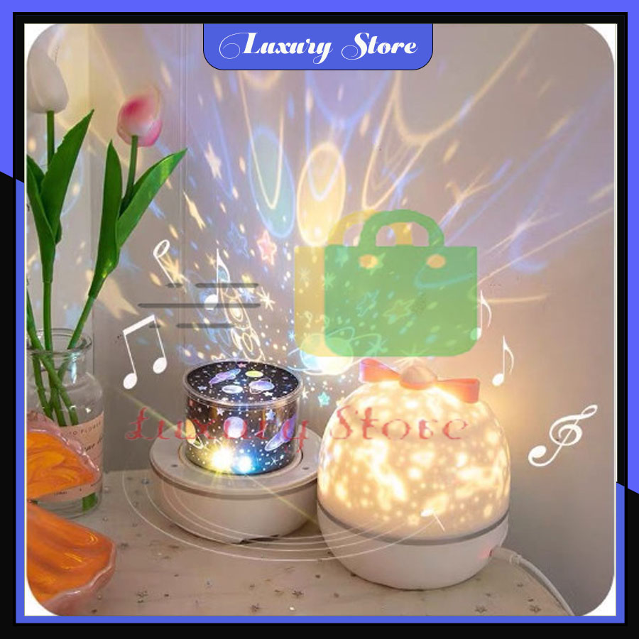 Đèn ngủ để bàn chiếu sao 3d, đèn ngủ ngàn sao chiếu hình decor xoay tự động phát nhạc TUHUHOUSE