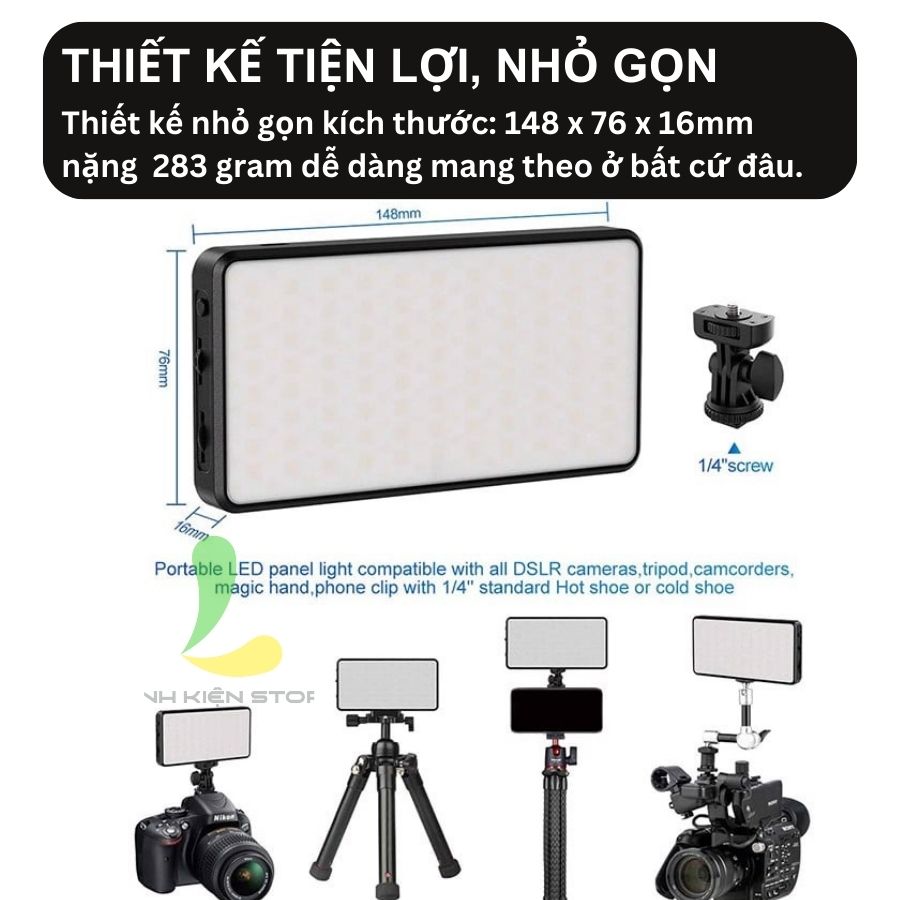 - Đèn video LED màu sắc có thể điều chỉnh 0 ° - 360 °, độ sáng có thể điều chỉnh 0% -100% với CRI: 95 + và góc chiếu: 120°.