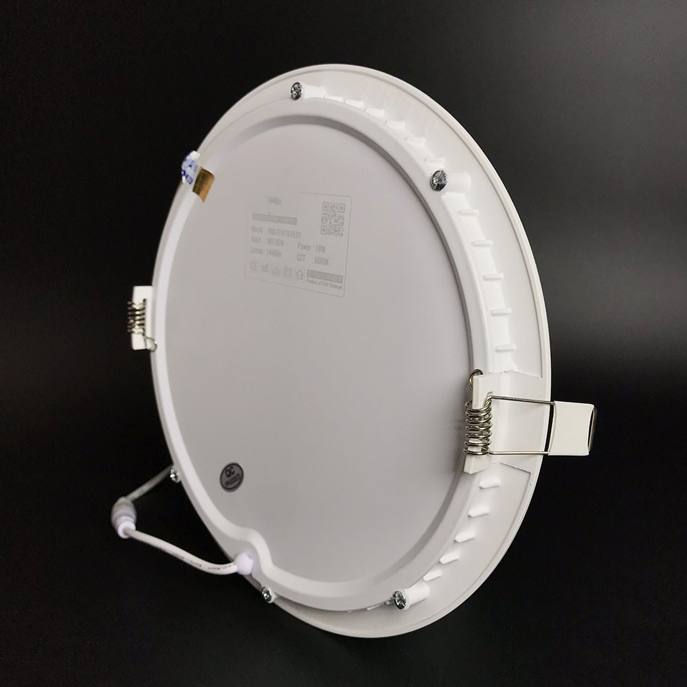 Công suất: 10W Điện áp: 220V/50Hz Quang thông: 1000lm Đổi 3 màu ánh sáng: Trắng/Vàng/Trung tính Kích thước (ØxH): (123x45)mm ĐK lỗ khoét trần: 110mm - Sử dụng Chip LED Hàn Quốc đạt độ tin