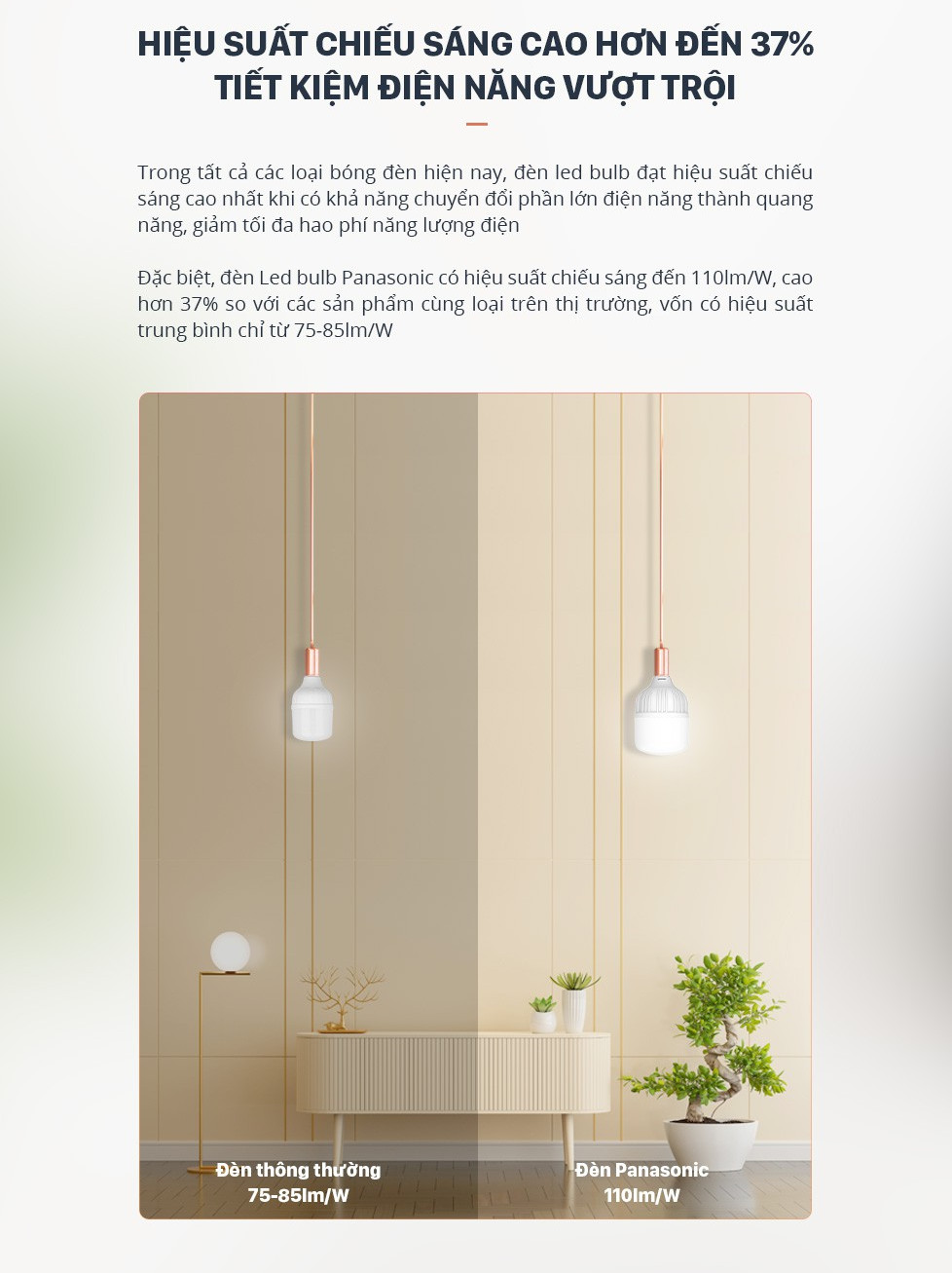 • Áp dụng công nghệ tiên tiến, đèn led bulb Lotus của Panasonic cung cấp nguồn sáng đầy đủ, chất lượng cao mà vẫn dịu êm, không gây chói mắt.