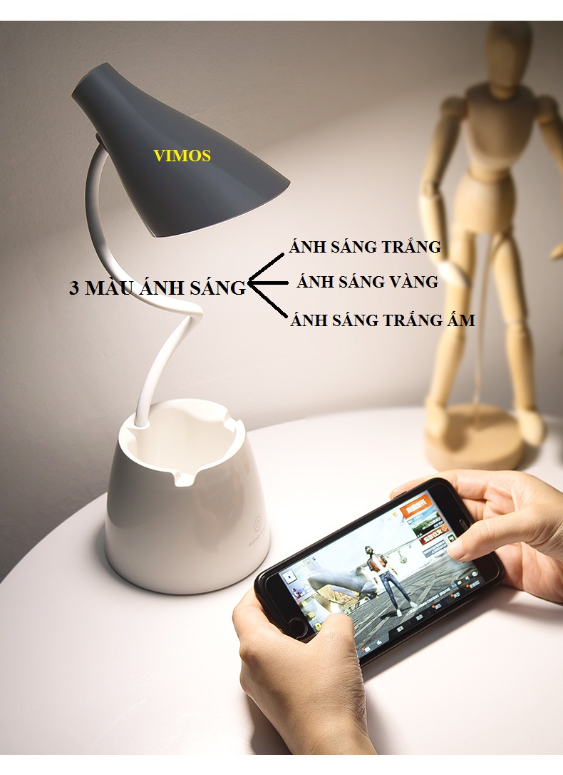 Mua tại TiktokĐèn bàn VIMOS thiết kế đẹp, được làm từ nhựa ABS cao cấp, có chỗ để bút viết, giá đỡ điện thoại vô cùng tiện lợi.