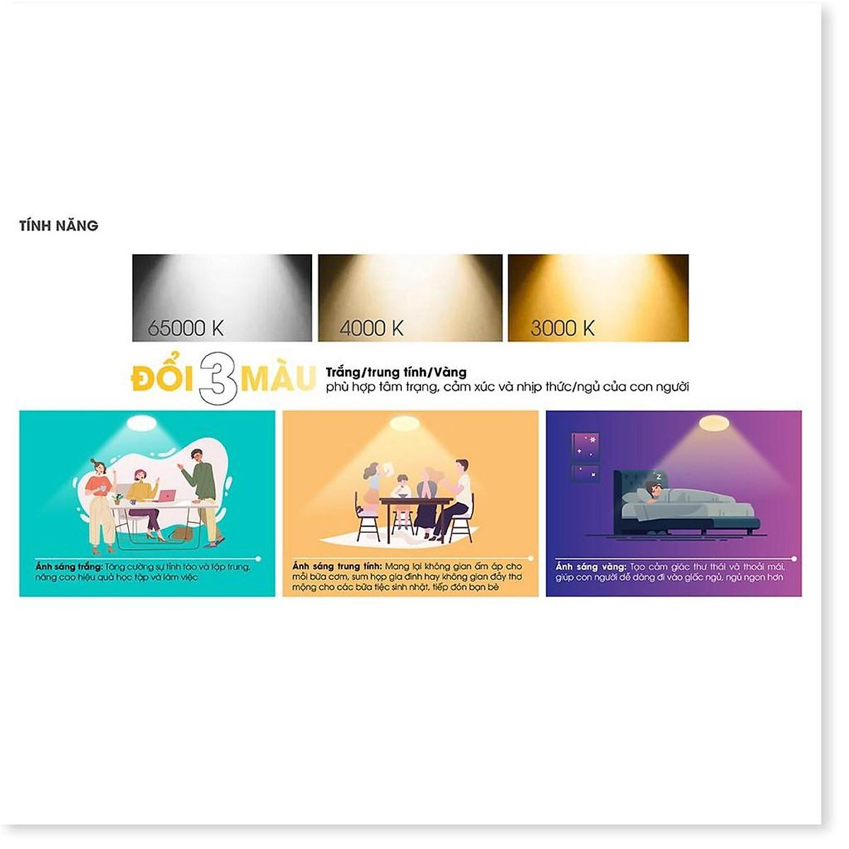 Công suất: 9W Điện áp: 220V/50Hz Đổi 3 màu: 4000K/5000K/6500K Quang thông: 580/680/600lm Kích thước (ØxH): (122x10)mm ĐK lỗ khoét trần: 110mm - Sử dụng chip LED Hàn Quốc chất lượng cao, tuổi thọ và