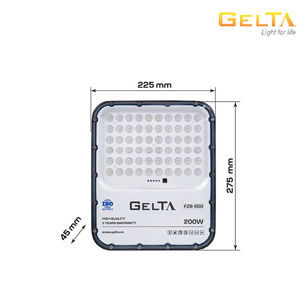 Đèn LED pha năng lượng mặt trời Gelta 200W là một lựa chọn vượt trội cho việc chiếu sáng ngoài trời với công suất mạnh mẽ và tích hợp công nghệ năng lượng mặt trời