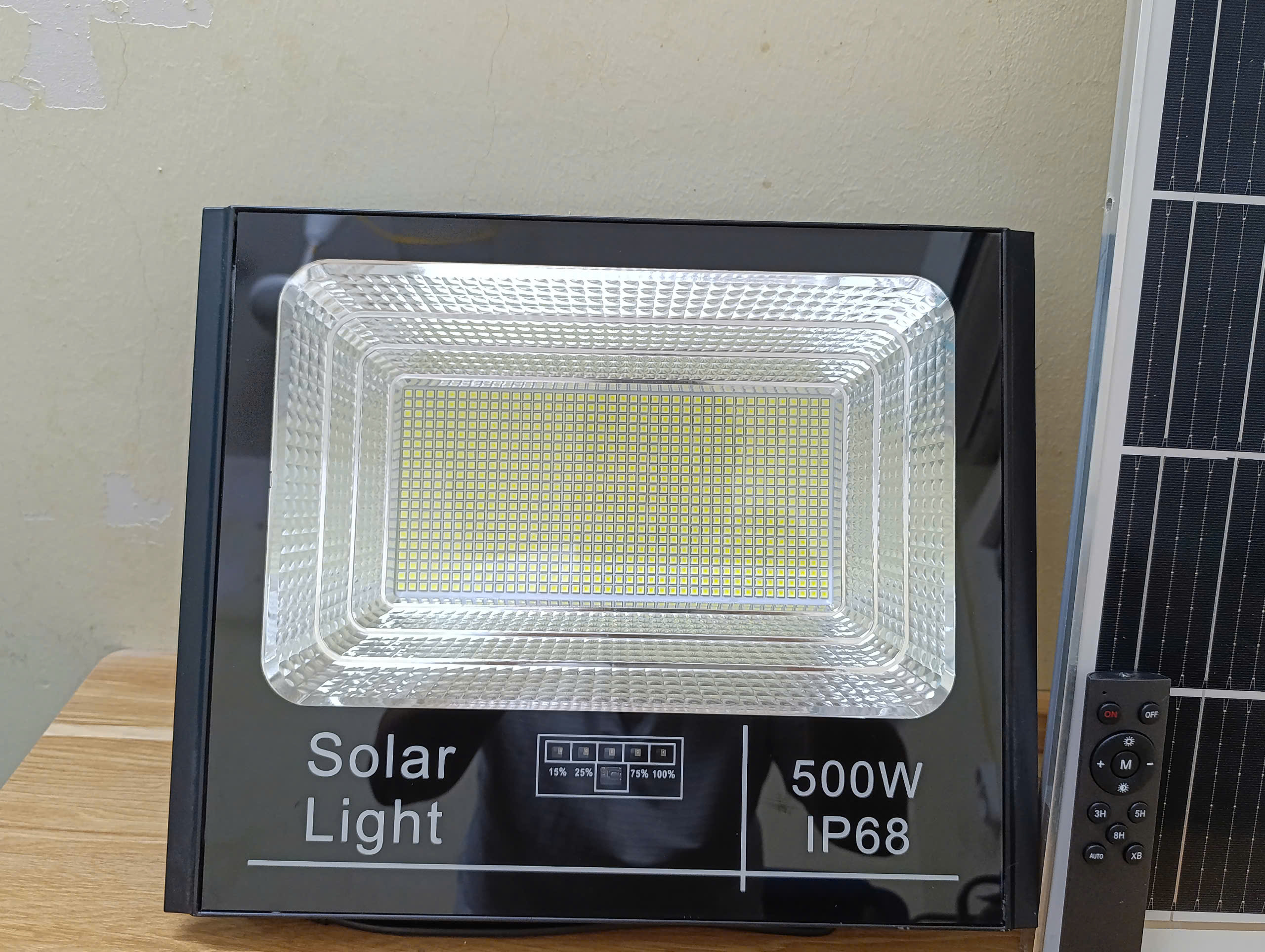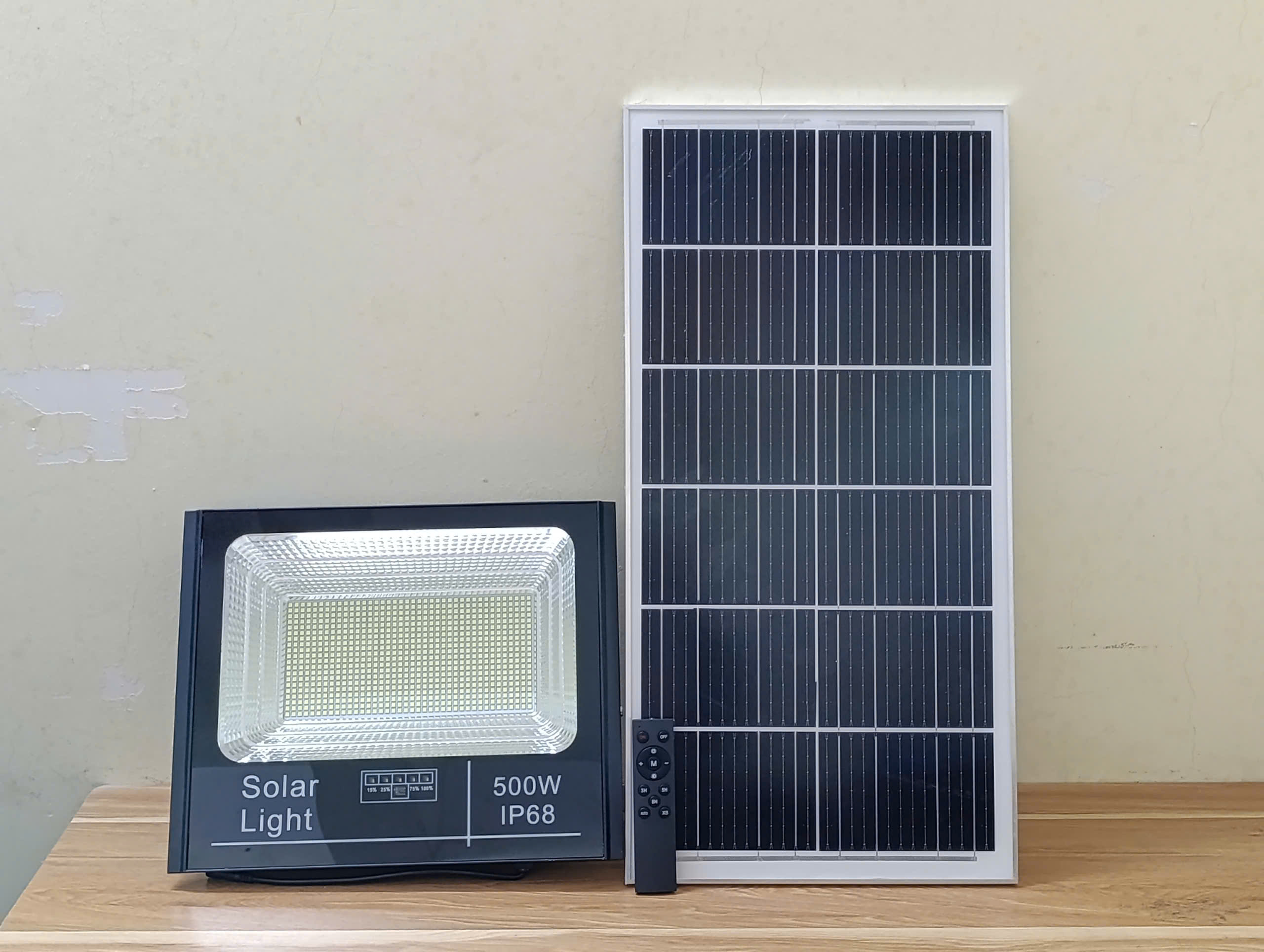 Đèn năng lượng mặt trời pha báo pin 500w