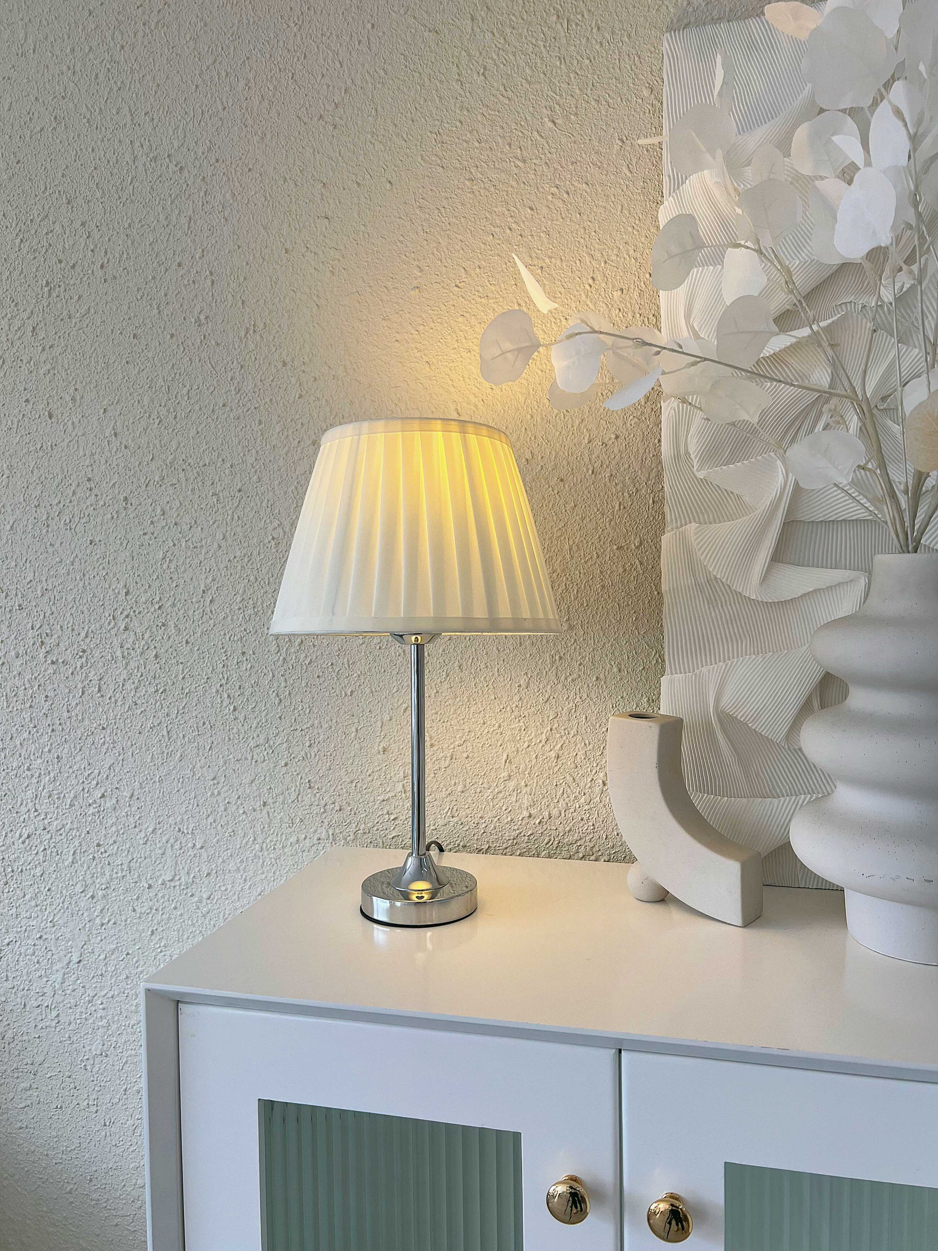 ️ Chất liệu: Chao đèn bảng vải Fabric + Thân đèn bằng kim loại mạ sơn chống rỉ ️ Màu sắc: bạc ️ Kích thước:( chiều dài thân x đường kính chao đèn x chiều cao tổng): 23 x 25 x 40 (cm) ️ Thông số bóng: Bóng đèn LED max 3W ánh sáng 3000K đui E27 (loại bóng này mới sử được với dây chỉnh sáng, bóng LED tiết kiệm điện, an toàn cho mắt) ️ Loại công tắc: công tắc điều chỉnh sáng SIÊU TIỆN LỢI ->> Sản phẩm không có sẵn bóng đèn, L.art tặng kèm 1 bóng đèn ánh sáng vàng trung tính cho khách hàng những trải nghiệm tốt nhất và sản phẩm. Đèn được đóng gói thùng xốp cẩn thận để đảm bảo đèn và chụp đèn bạn nhận được 100% hoàn hảo như hình