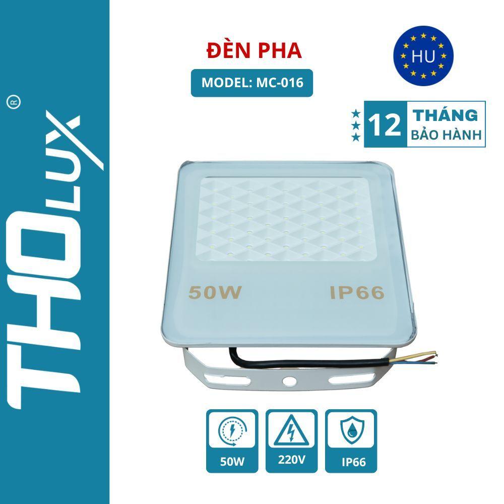 THÔNG TIN SẢN PHẨM - Thương Hiệu: Tholux - Tiêu chuẩn sản phẩm Châu Âu Đèn pha MC-016 có công suất 50W, điện áp 220V, độ chống nước IP66, tuổi thọ chip cao, thời gian