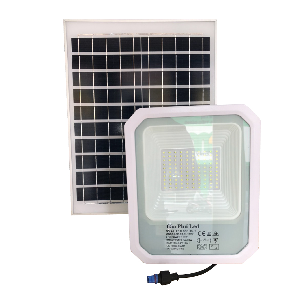 Đèn led pha năng lượng mặt trời 120w chiếu sáng sân vườn