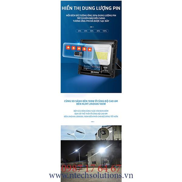 ĐÈN LED SOLAR LIGHT 40W - JD8840L • Kích thước: 25.5 × 22 × 6 cm • Công suất: 40w • Số lượng chip: 110 Chip Led • Tính năng: Cảm biến ánh sáng, Điều