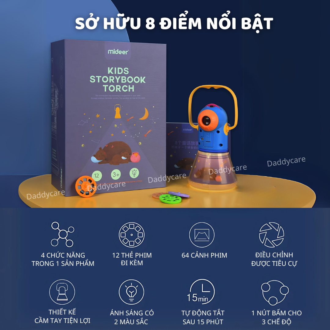 - AN TOÀN CHO TRẺ EM: Đèn làm từ nhựa ABS - là loại nhựa cứng cáp và bền bỉ. 13. CHÚNG TÔI KHÁC BIỆT: So với các đèn pin chiếu hình và máy chiếu phim trẻ em trên thị trường, đèn chiếu hình kể chuyện Mideer nổi bật với các chức năng độc quyền như Sleep Light, Starlight, Projection, Hand-held Night Light và chế độ tự động tắt – cùng nguồn sáng mạnh mẽ và gấp đôi số lượng phim. Thông tin Đèn pin chiếu hình cổ tích cho bé Mideer Kid Storybook Torch